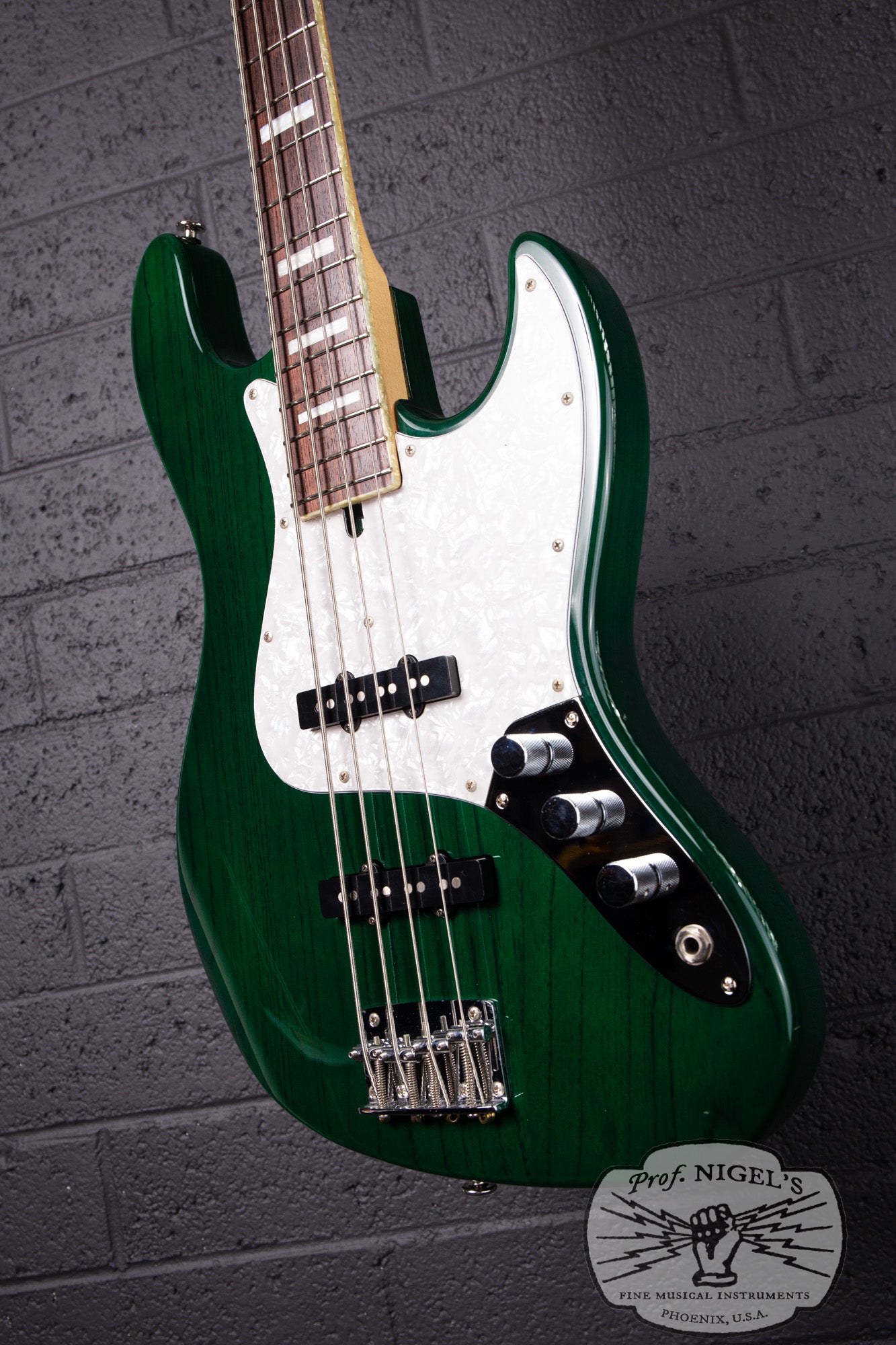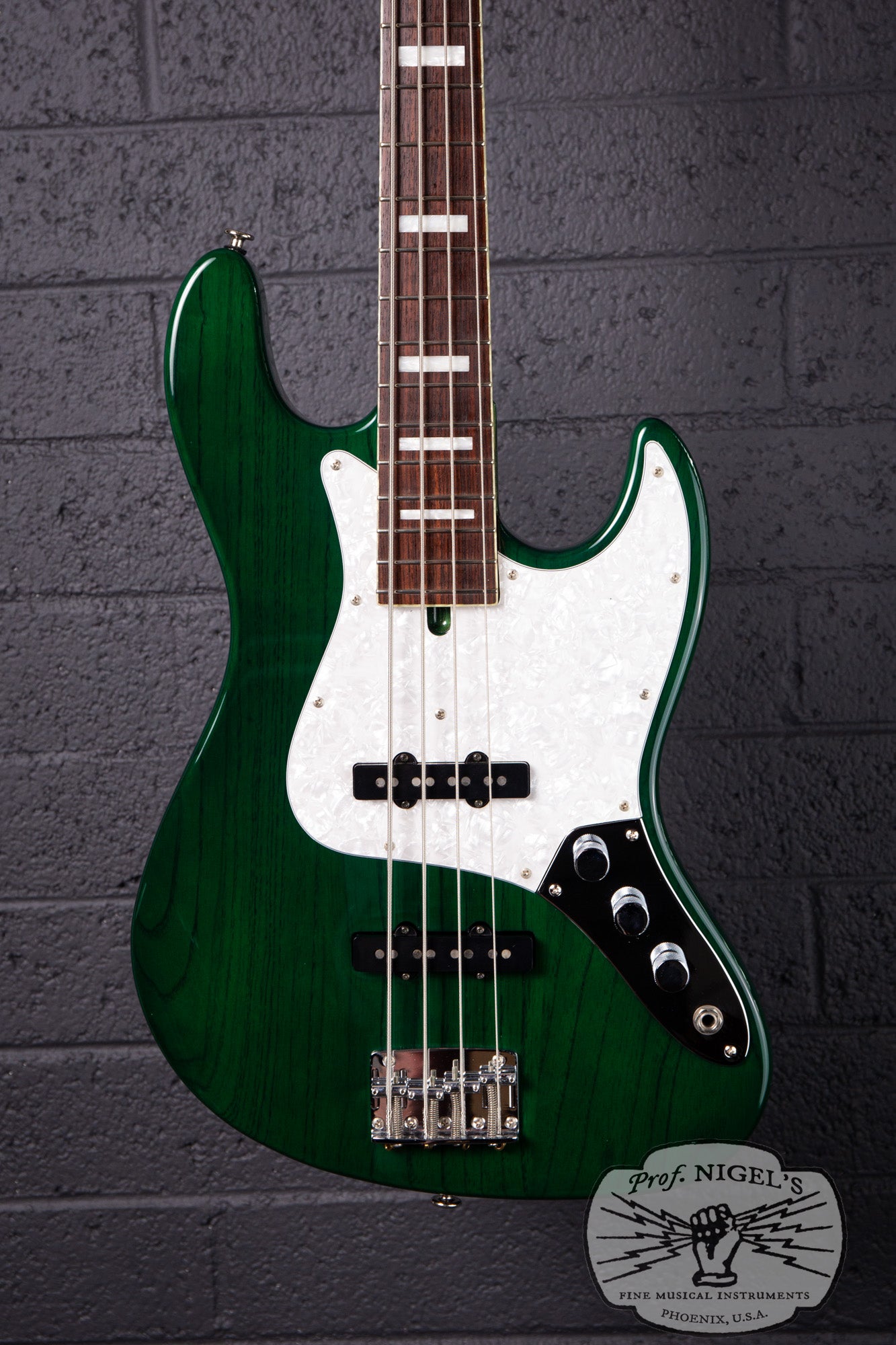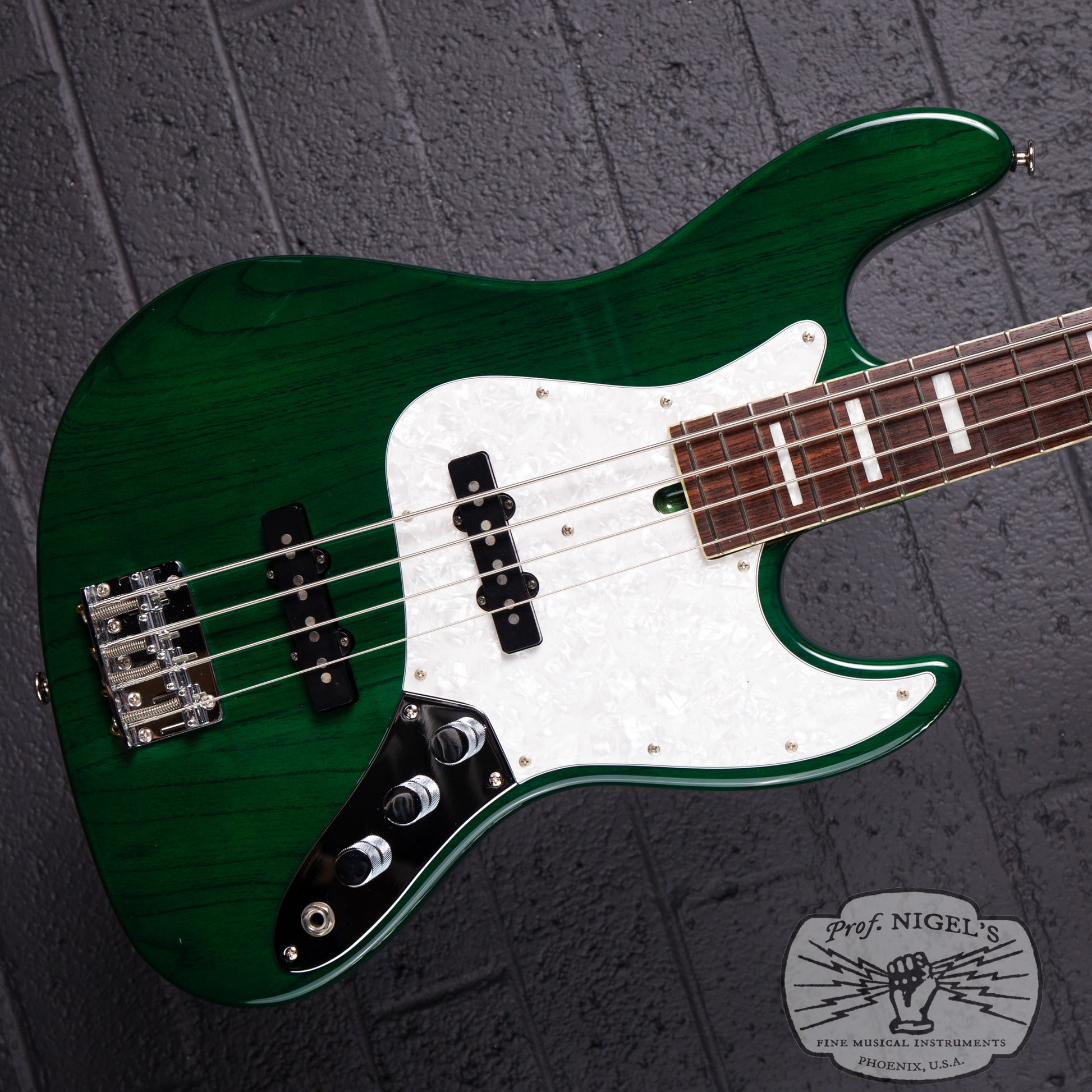 Inspired by the Fender Jazz Bass design and featuring a classic tonewood combo, the WL-JB4’s slightly smaller, contoured body is crafted from select alder and finished in a beautiful emerald toned Transparent Green rare to find for this model. The masterfully applied finish highlights the striking grain of the alder body, while elegant pearloid neck binding and block inlays add refined detail and upscale presence. The masterfully crafted C-profile neck (specs above) features a real bone nut, superb fretwork and a beautifully figured rosewood fretboard adding to the boutique appeal of this instrument. High-quality Gotoh tuners and a heavy duty vintage-style bridge ensure excellent tuning stability, tone, and sustain.