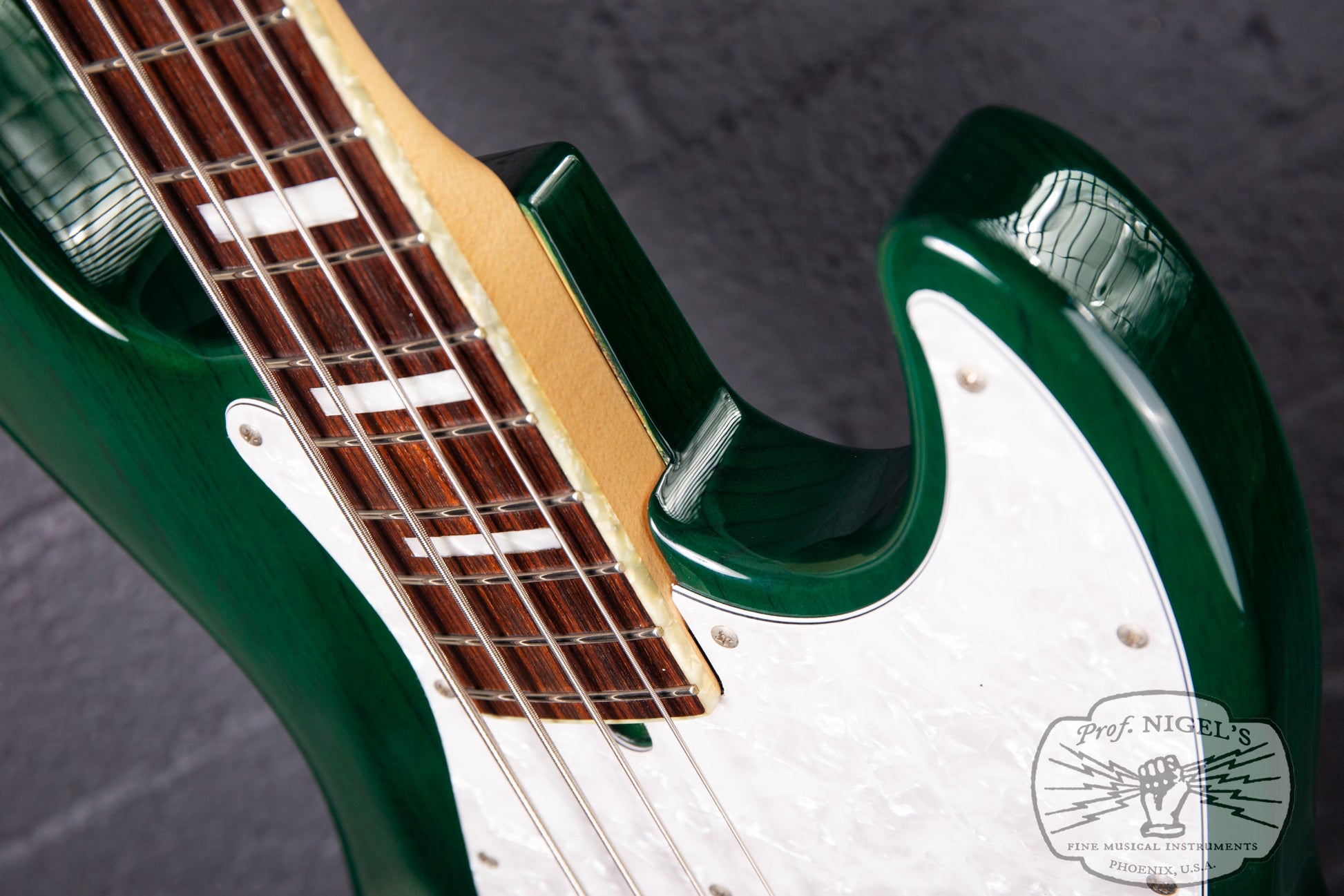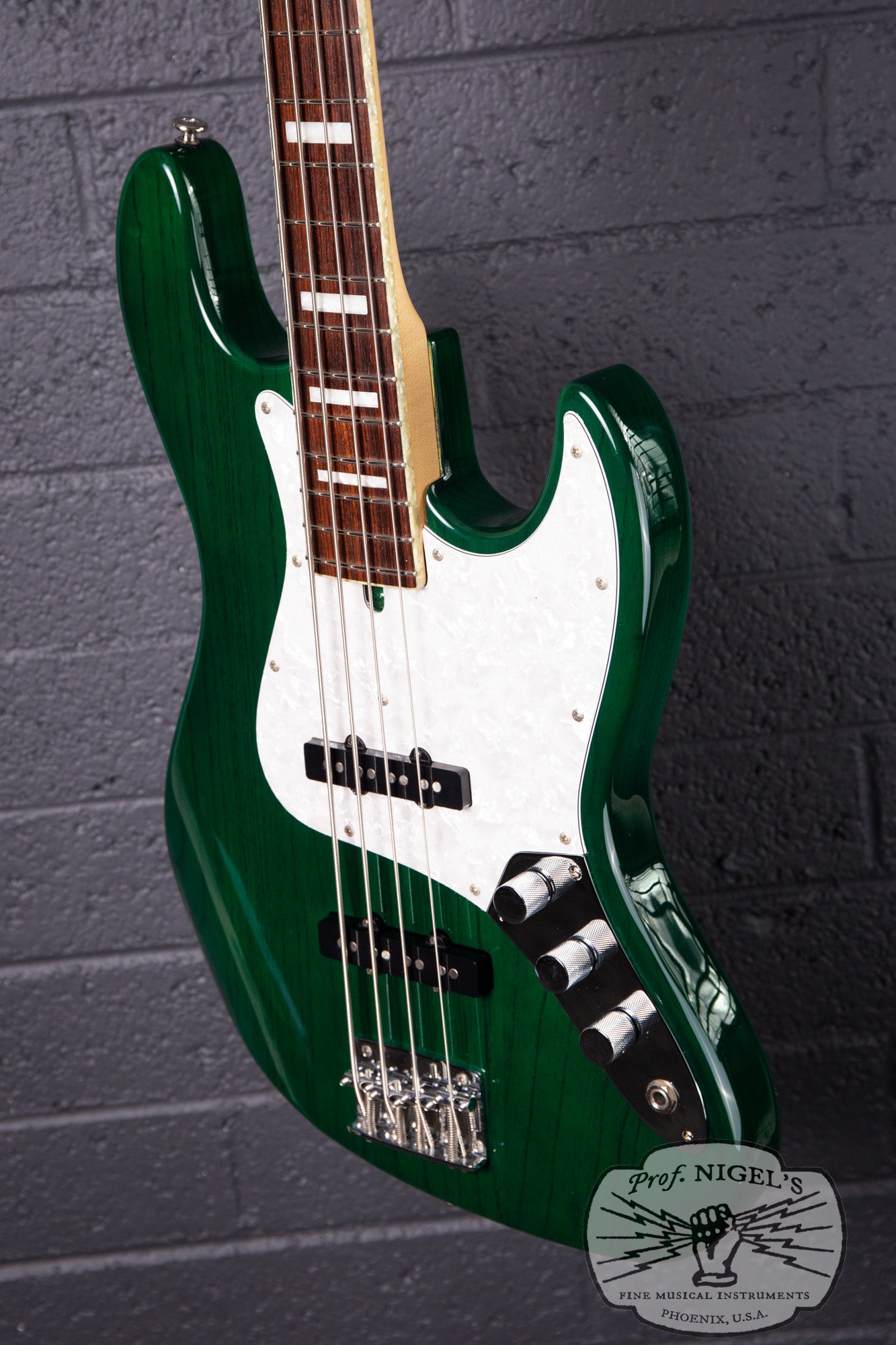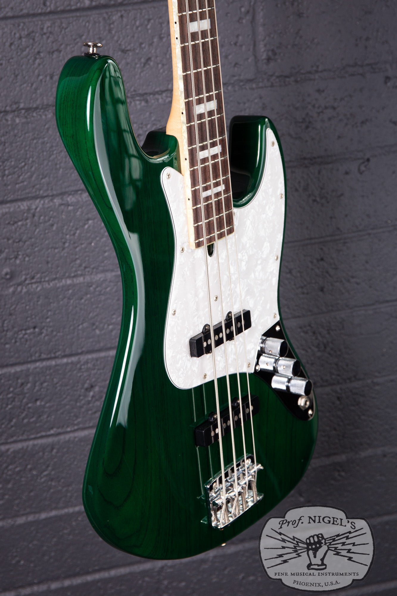 Inspired by the Fender Jazz Bass design and featuring a classic tonewood combo, the WL-JB4’s slightly smaller, contoured body is crafted from select alder and finished in a beautiful emerald toned Transparent Green rare to find for this model. The masterfully applied finish highlights the striking grain of the alder body, while elegant pearloid neck binding and block inlays add refined detail and upscale presence. The masterfully crafted C-profile neck (specs above) features a real bone nut, superb fretwork and a beautifully figured rosewood fretboard adding to the boutique appeal of this instrument. High-quality Gotoh tuners and a heavy duty vintage-style bridge ensure excellent tuning stability, tone, and sustain.