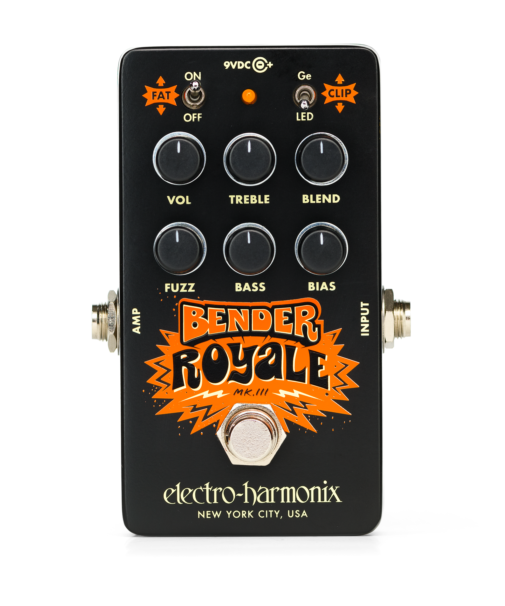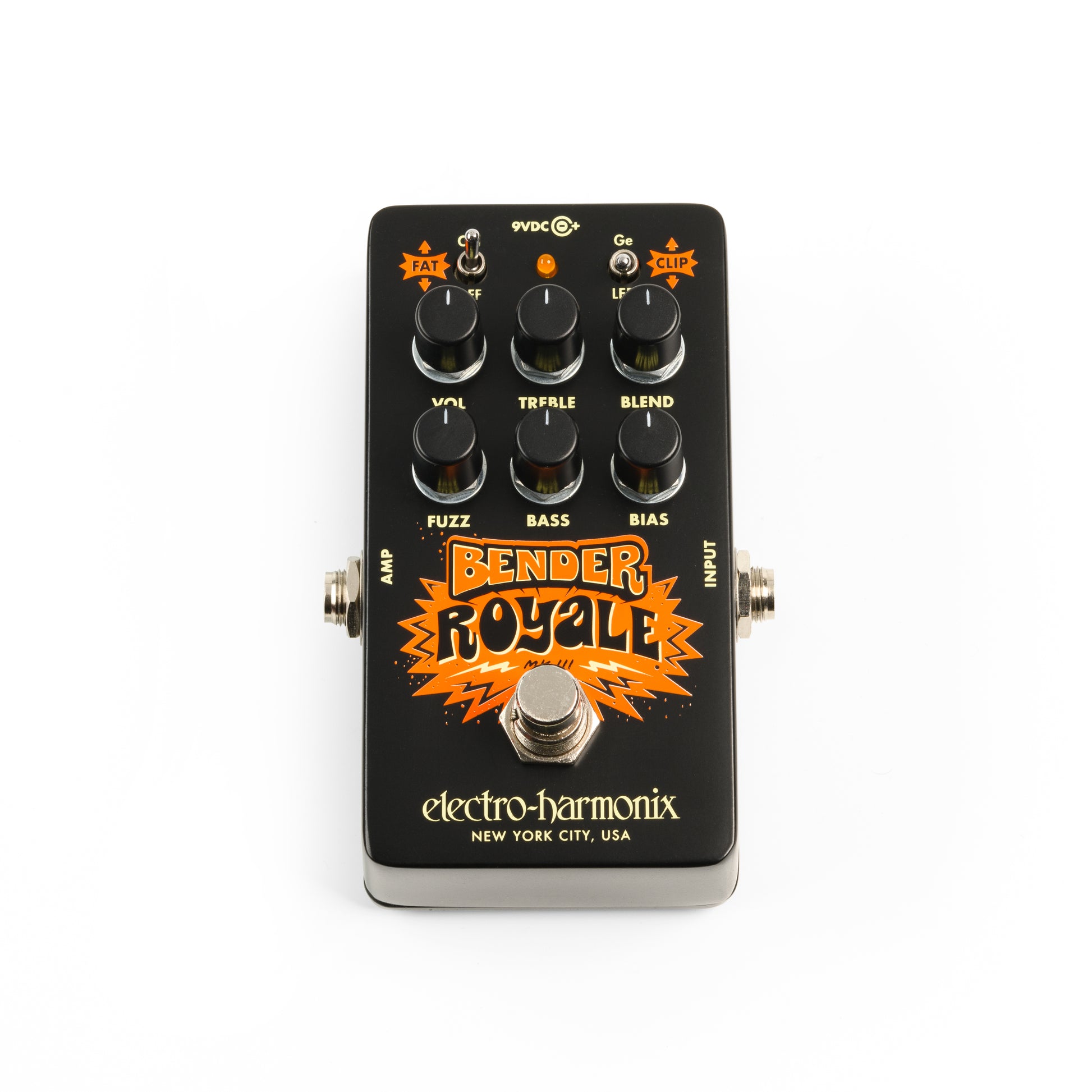 The Electro-Harmonix Bender Royale is a compact fuzz pedal that delivers the essential tones of three different Tone Bender circuits: