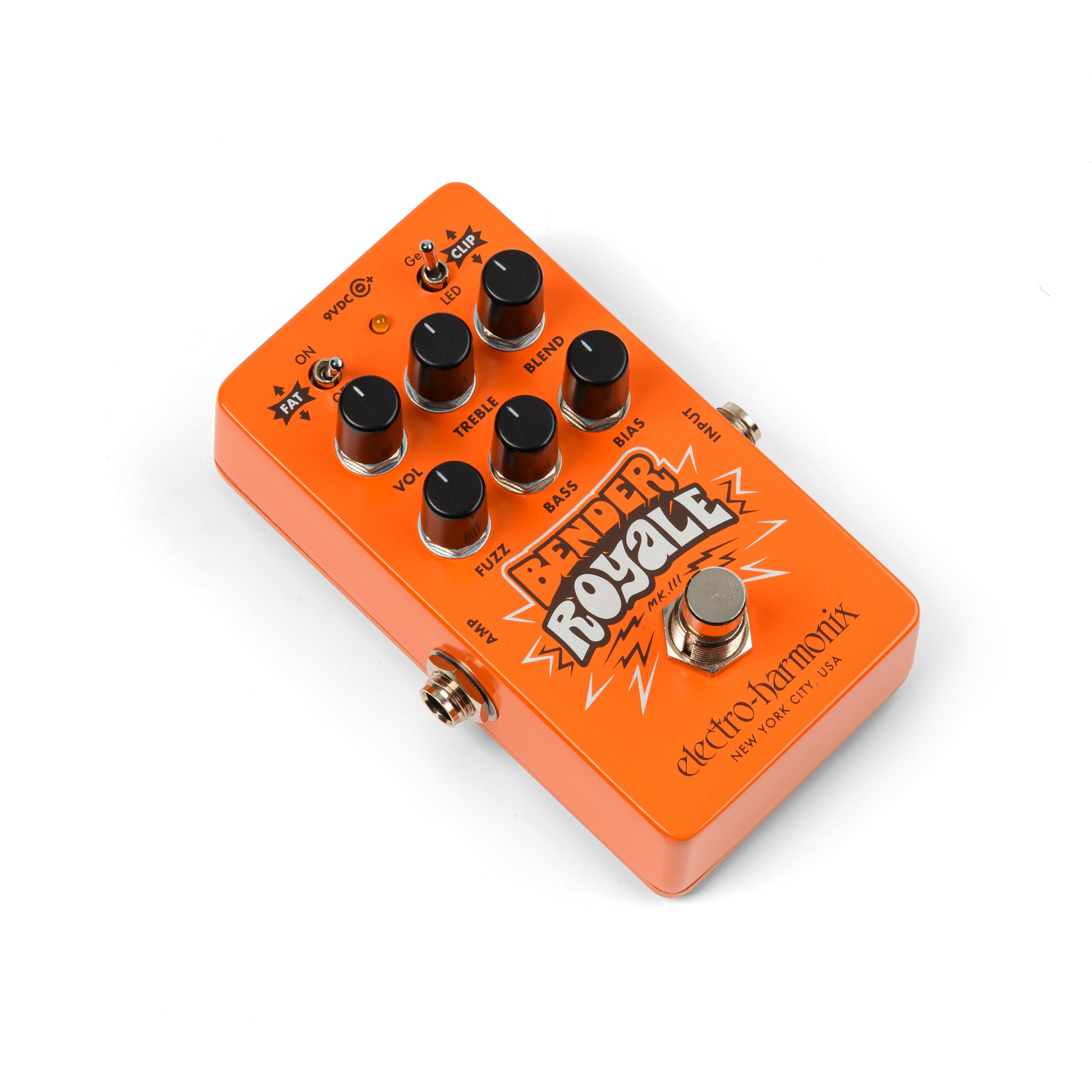 The Electro-Harmonix Bender Royale is a compact fuzz pedal that delivers the essential tones of three different Tone Bender circuits: