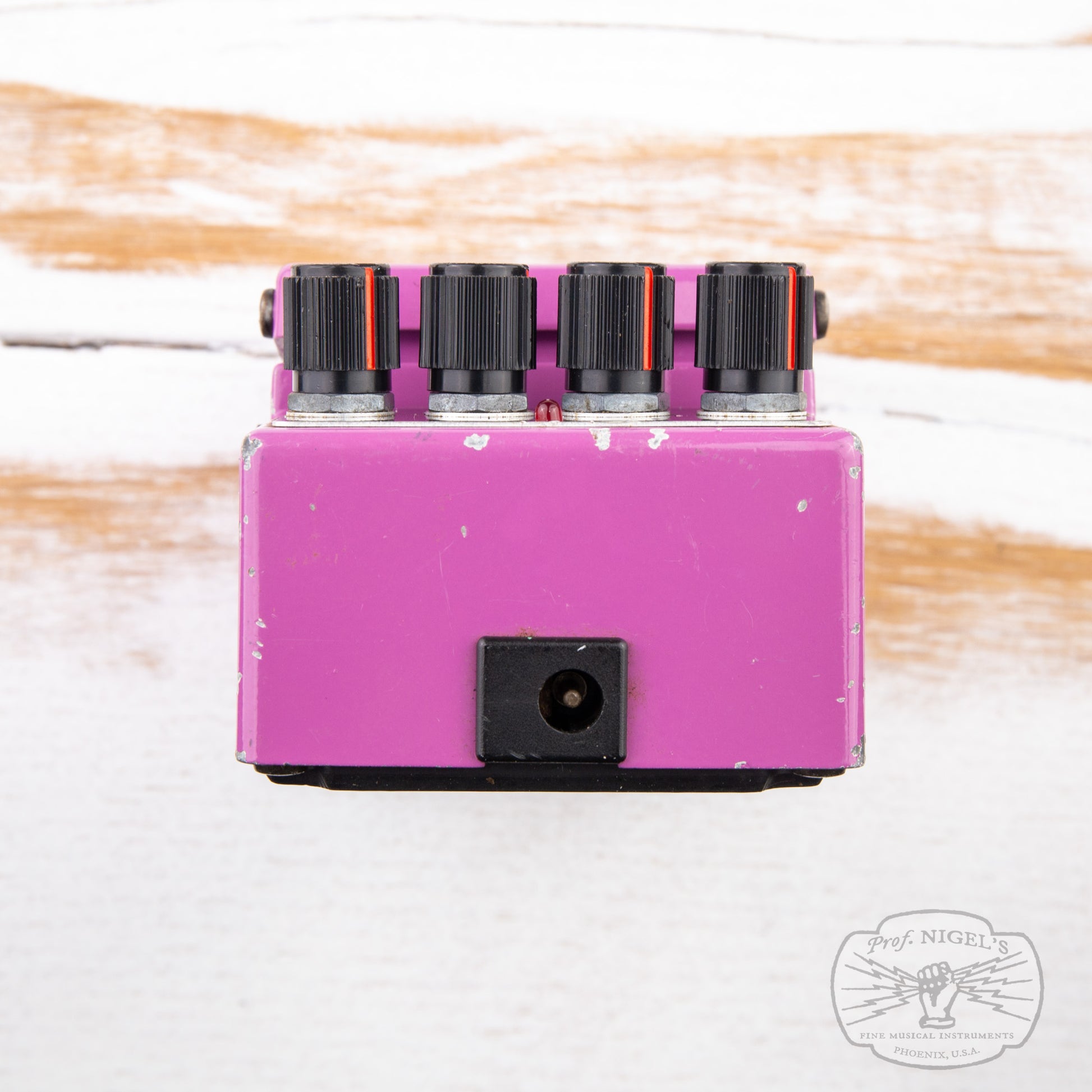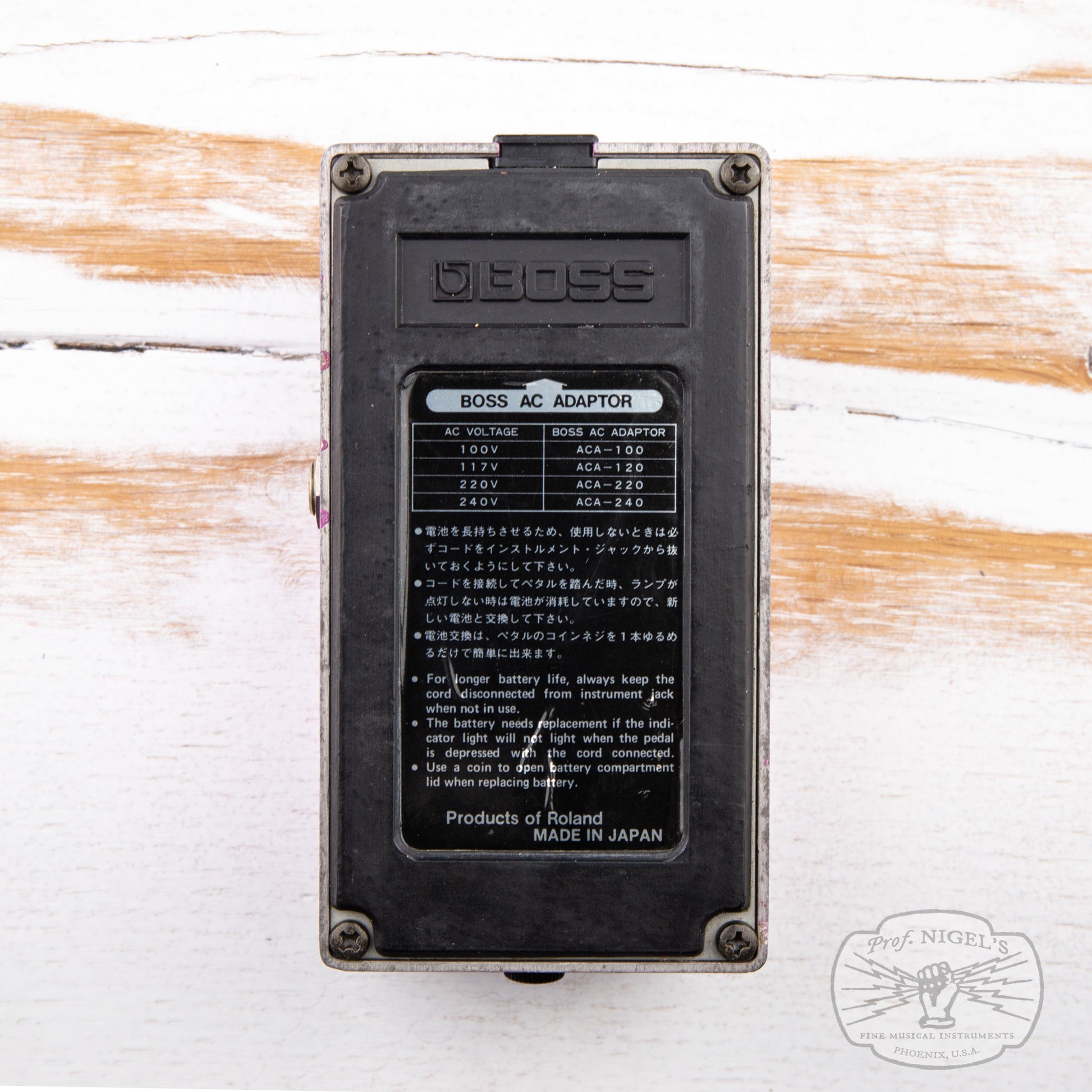 This effects pedal is in Very Good condition with scattered chips and scuffs on the exterior. This does not impact sound or functionality. The serial number of this unit dates to August 1981 making it an early black screw unit. This unit has been thoroughly cleaned and tested with 9v battery and ACA compatible power supply. We have replaced the deteriorating rubber screw guide. All functions are operational. The original packaging and instructions are not included. This unit requires a BOSS ACA power supply or a 9V battery. Have questions about powering Boss 12v ACA pedals? Message us!