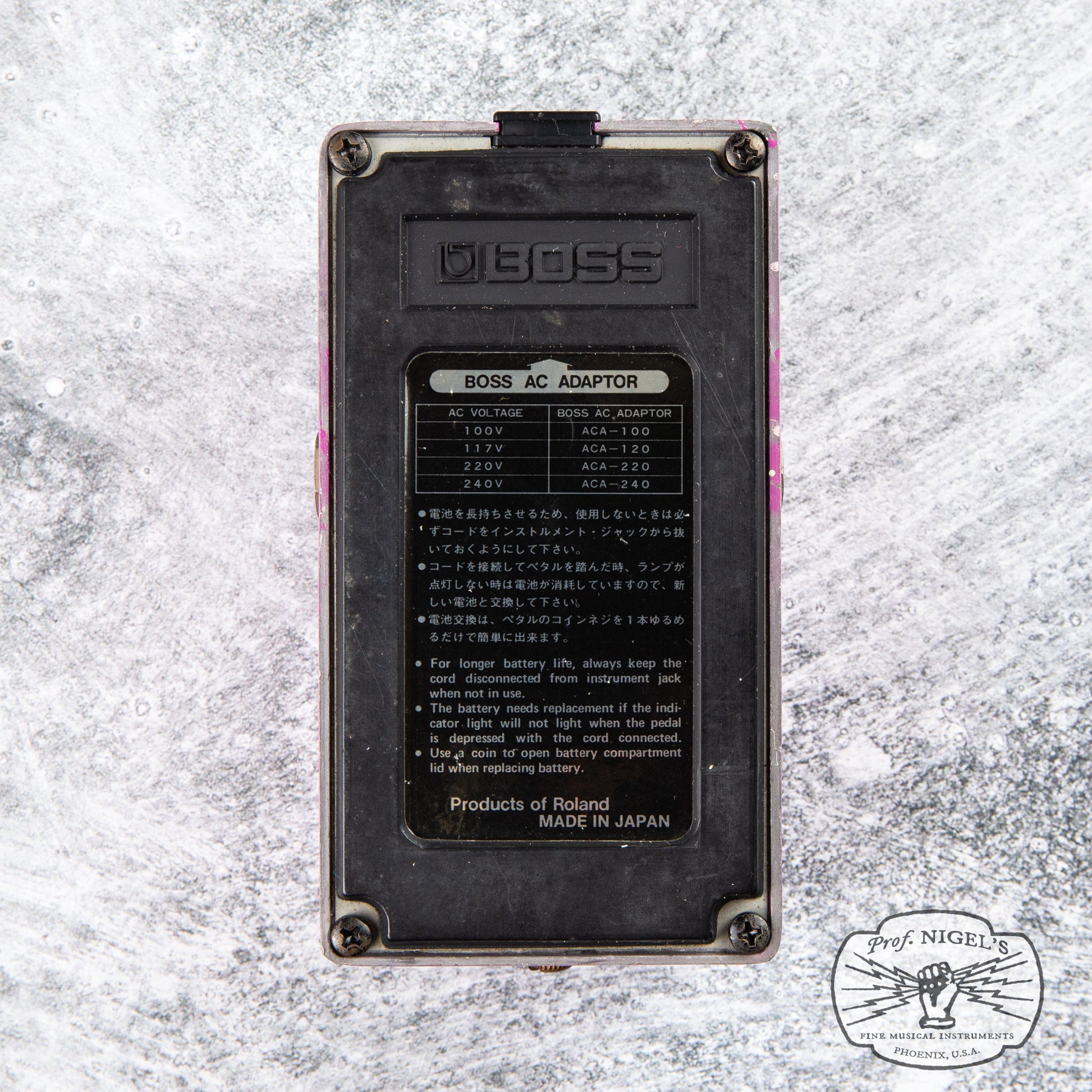 This effects pedal is in Excellent condition with minor scattered chips and scuffs. This does not impact sound or functionality. The serial number of this unit dates to December 1980. We have replaced the original rubber screw grommet. This unit has been thoroughly cleaned and tested with 9v battery and ACA compatible power supply. All functions are operational. The original box is included, but does show wear on the exterior. This unit requires a BOSS ACA power supply or a 9V battery. Have questions about powering Boss ACA 12v pedals? Message us!