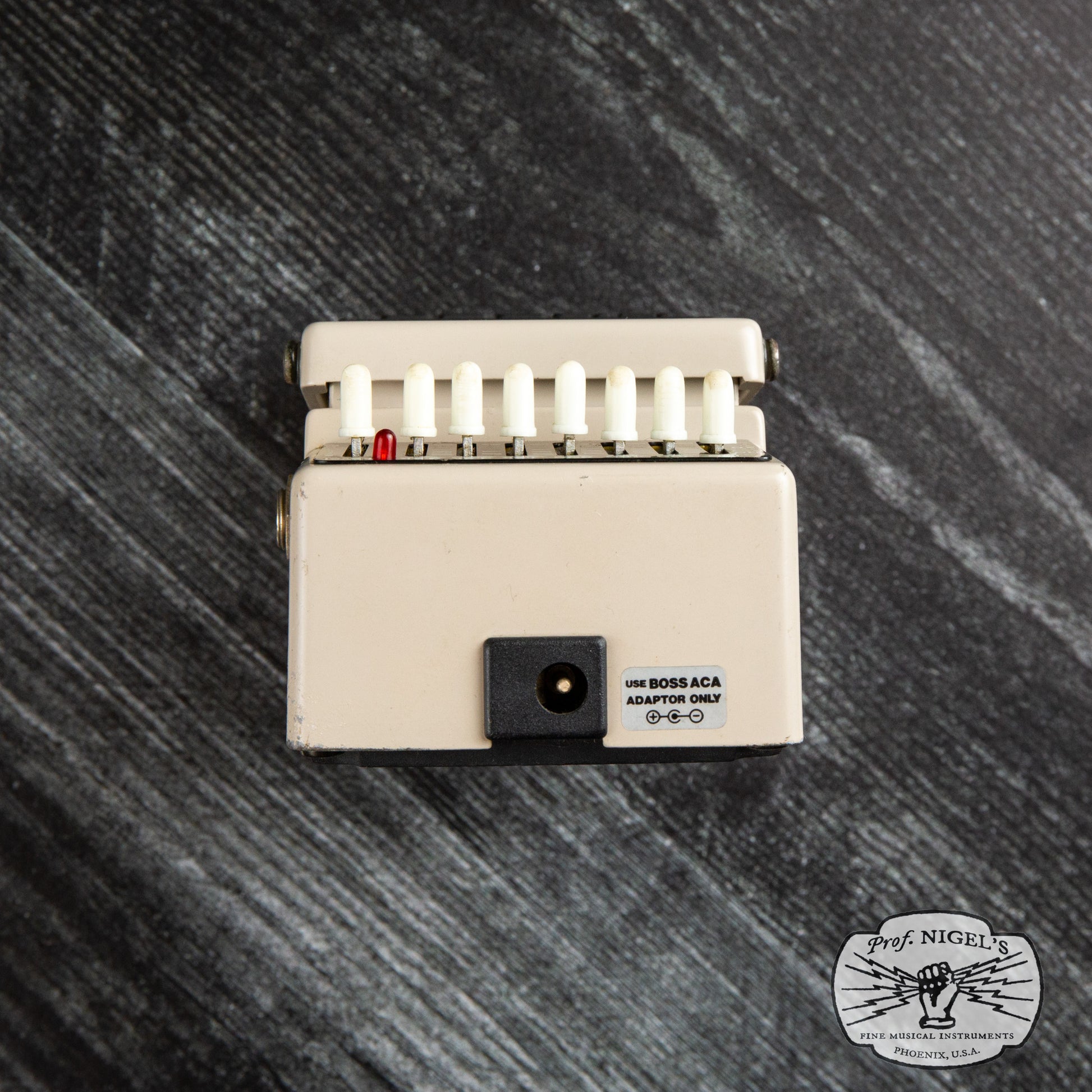 This effect pedal is in Excellent condition. There are minor scattered chips and scuffs on the exterior. This unit has been thoroughly cleaned and tested with 9v battery and ACA compatible power supply. All functions are operational. Build date of December 1988. The original box and instructions are not included. This unit requires a BOSS ACA compatible power supply or a 9V battery. Unsure about powering Boss ACA 12v pedals? Send us a message.