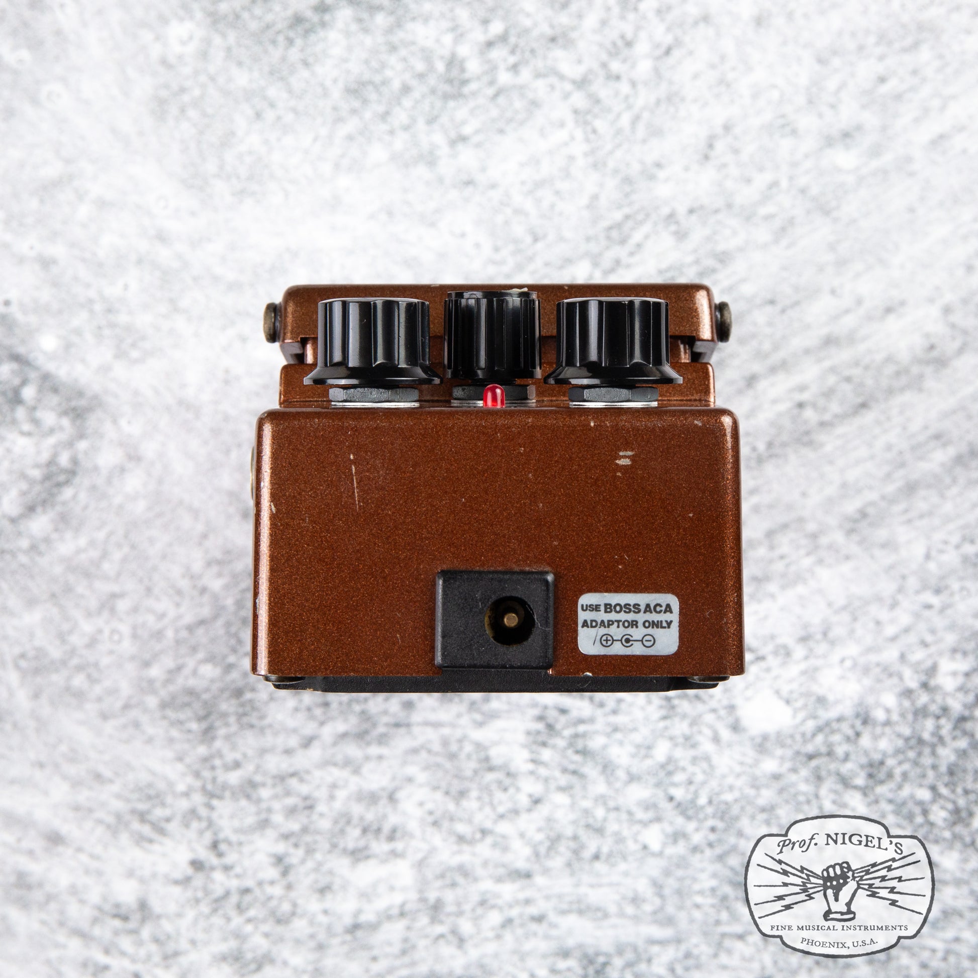 This effects pedal is in Excellent condition. There are minor paint chips, scuffs and scratches on the exterior. This unit has been thoroughly cleaned and tested with 9v battery and compatible power supply. All functions are operational. Build date of June 1987. The original box is included. This unit requires a BOSS ACA power supply or a 9V battery. Have questions about powering Boss ACA 12v pedals? Message us!