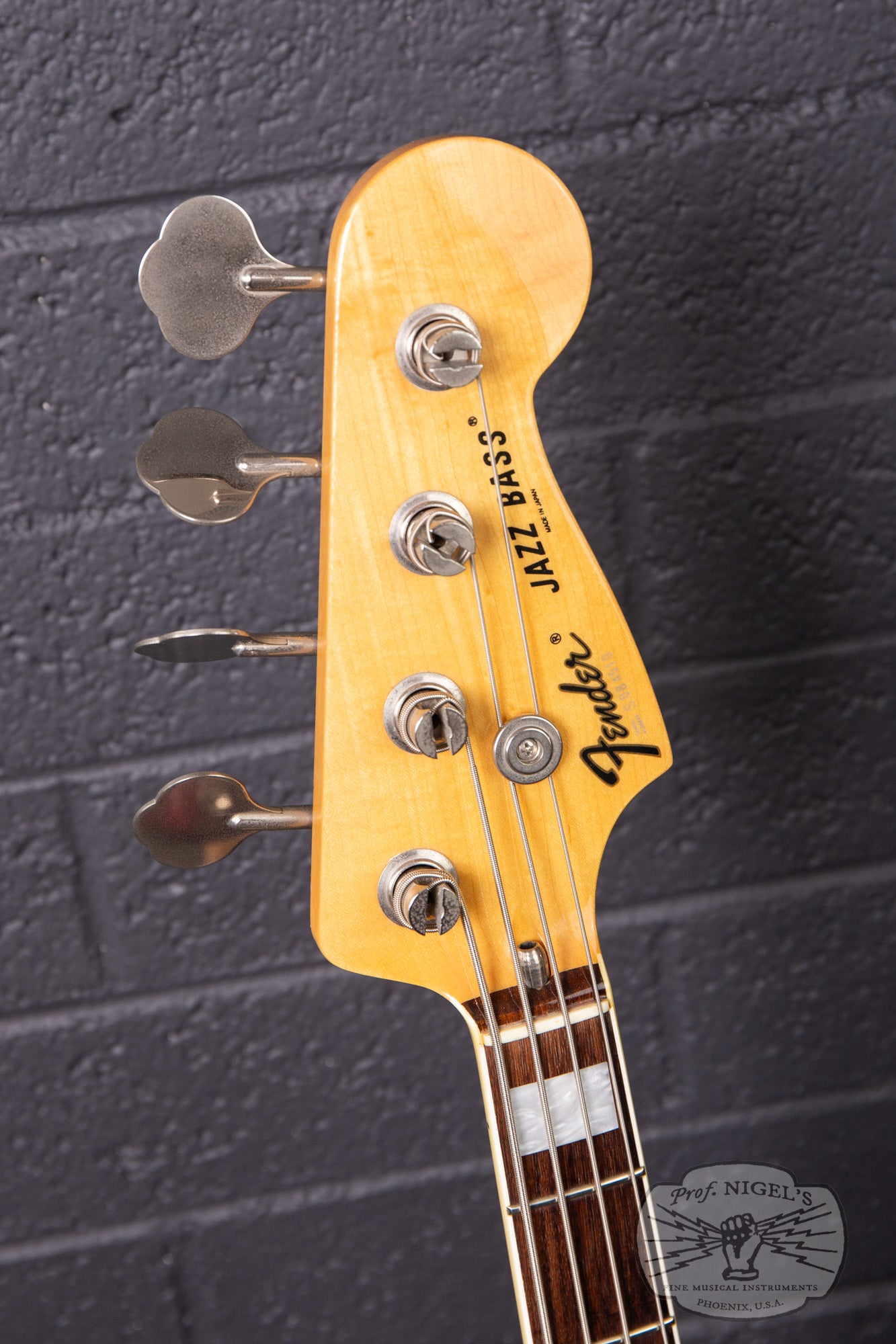 An unusual rarity produced exclusively for the Japanese market in the mold of a ’75 Jazz Bass, this bass is unusual for having a PJ pickup configuration, alder body, rosewood fretboard, and 4 bolt neck. Unlike later versions of this model made by Dyna Gakki, this model features US-made pickups. It is likely this bass was made by Tokai Gakki given the serial number and stamping on the parts. Tokai-made Fenders have a very distinct character in both feel and tone that we often find preferable to contemporary and current CIJ/MIJ Fender basses. This bass is no exception.
