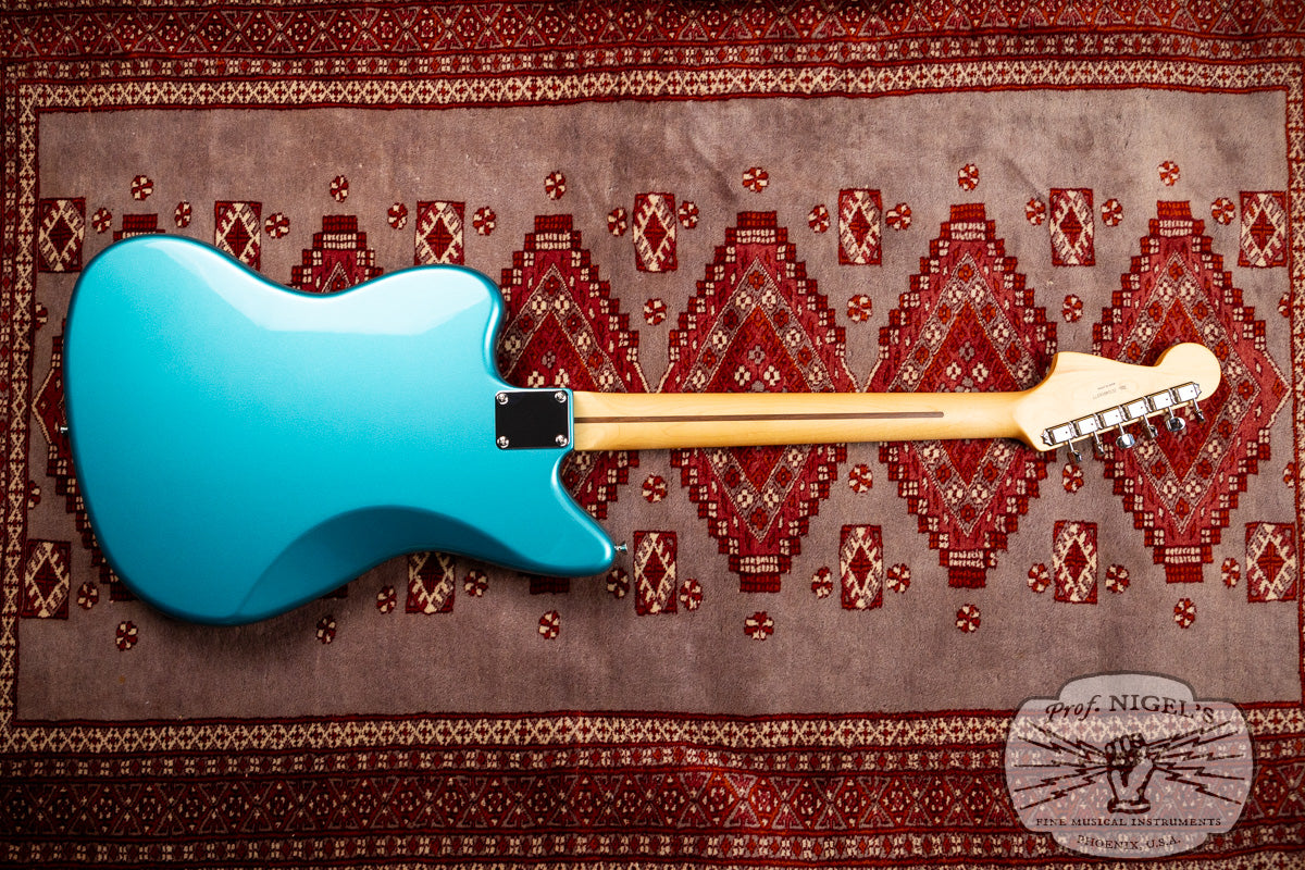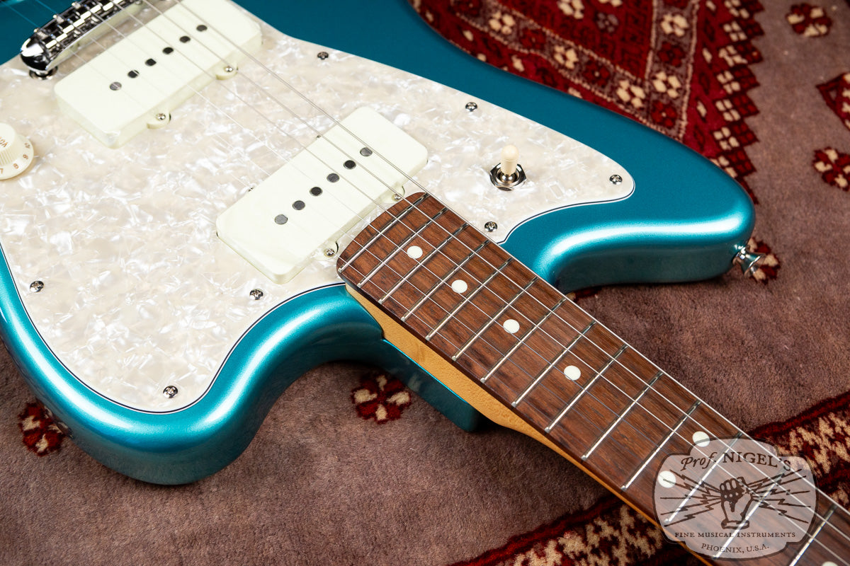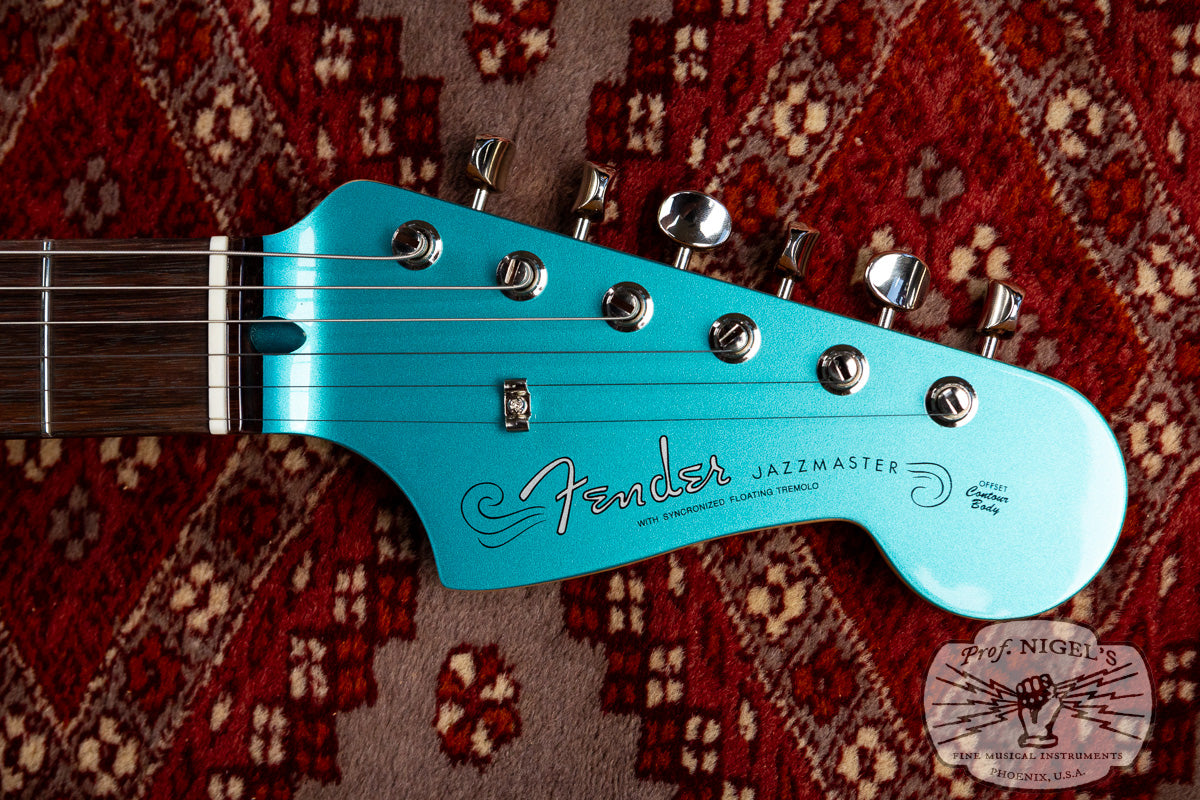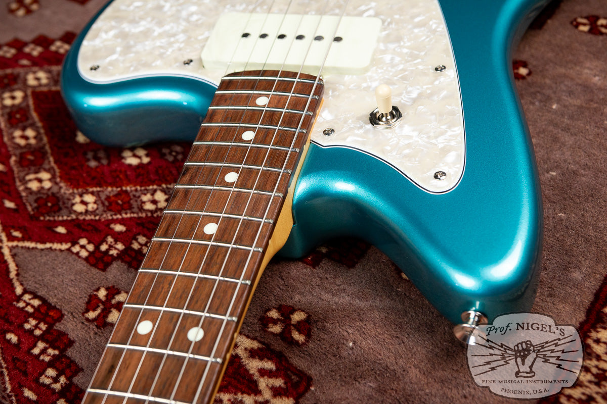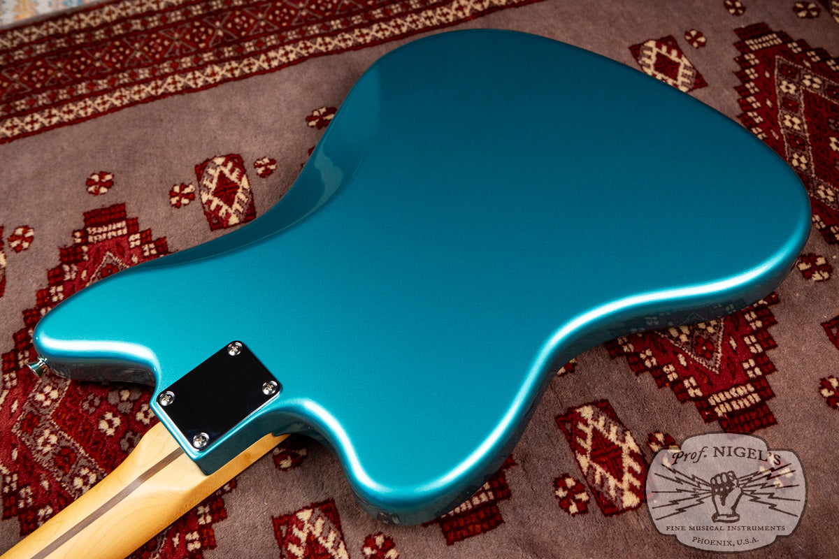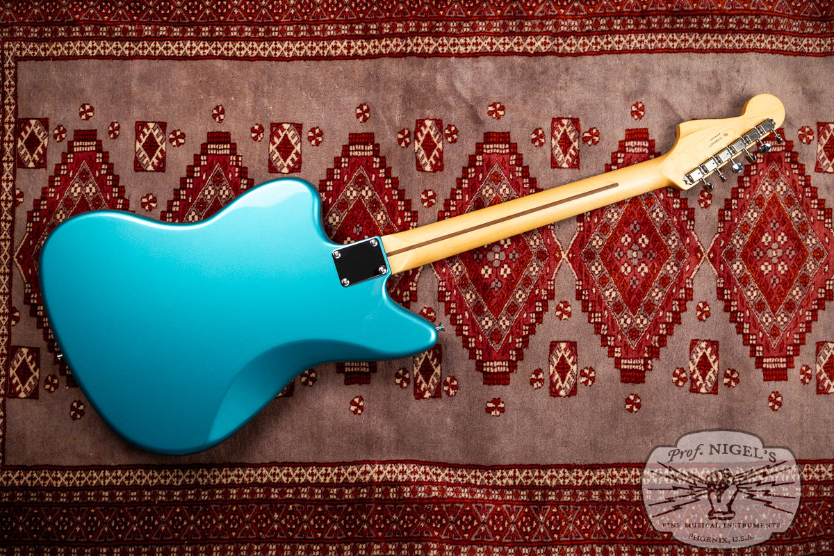 This limited run, 1 of 12, Made in Japan Jazzmaster is a rare bird indeed. This is a special run of the Hybrid II Jazzmaster for a single Japanese music retailer finished in Teal Green Metallic with matching headstock.