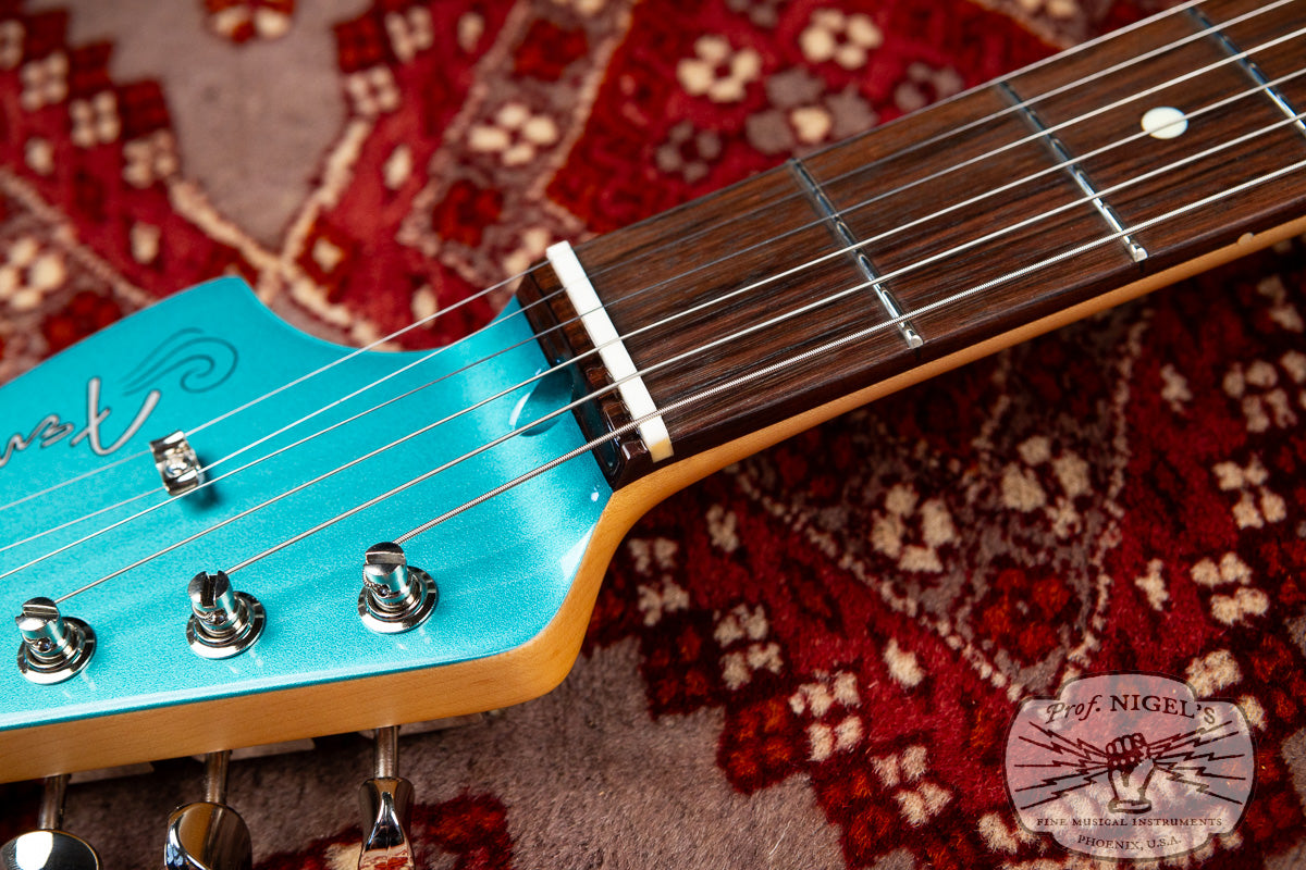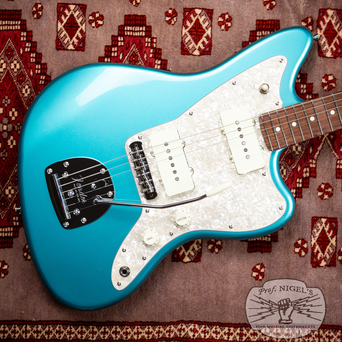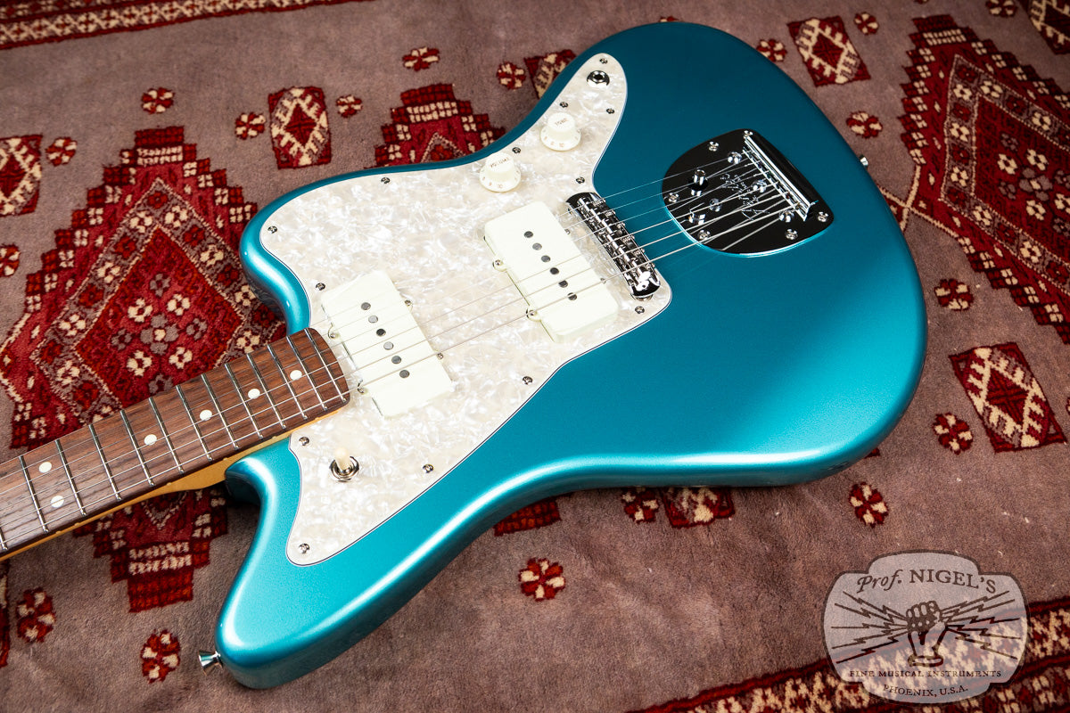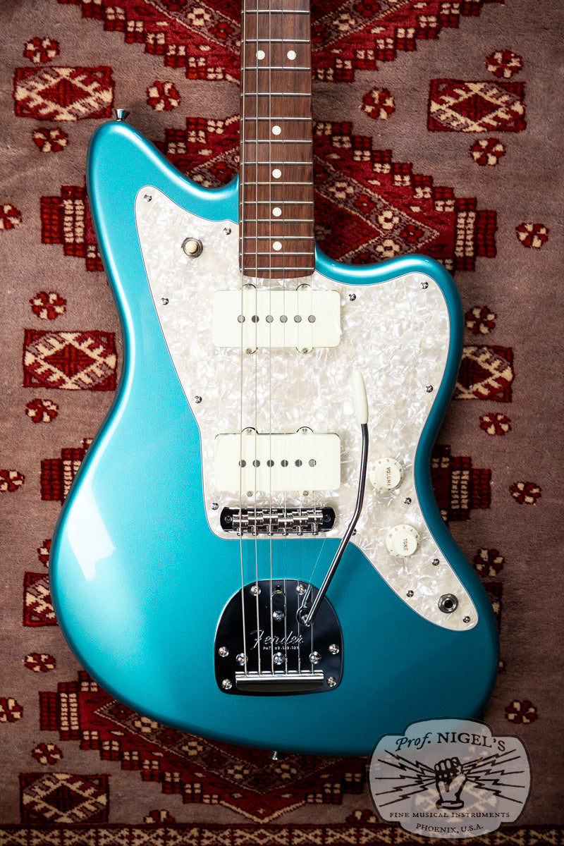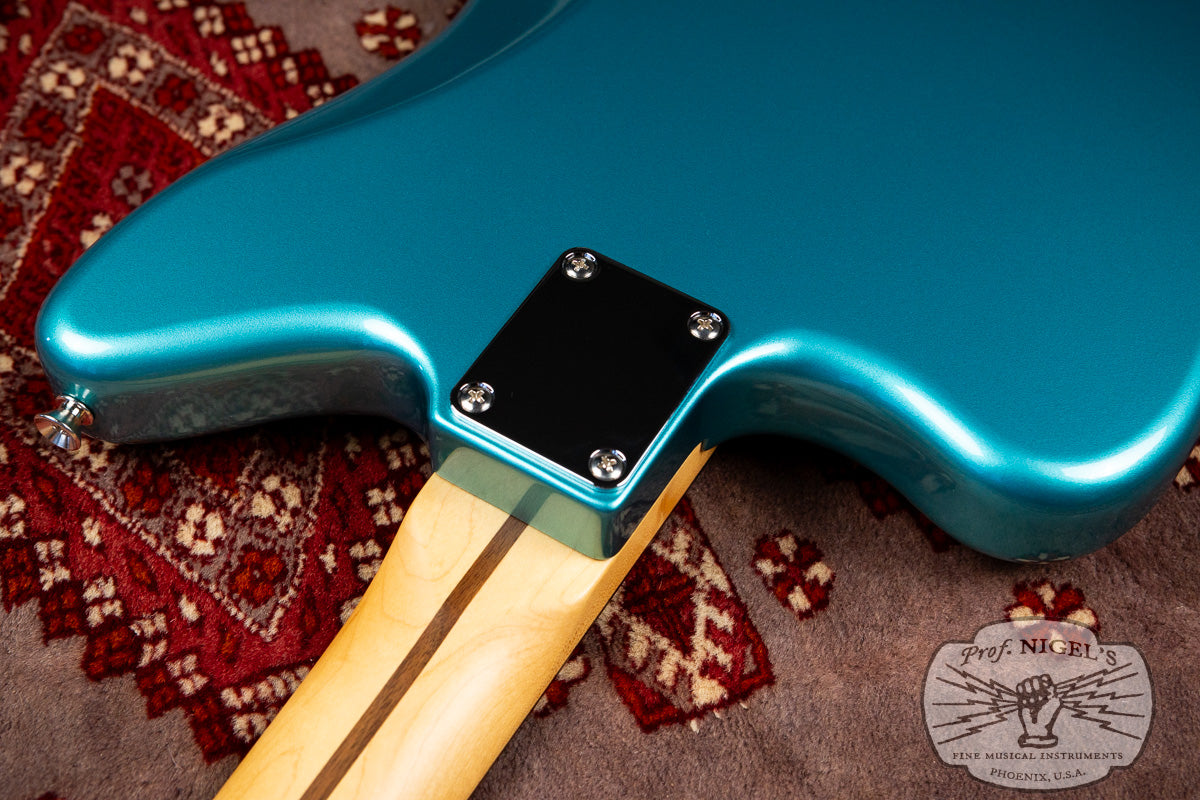 This limited run, 1 of 12, Made in Japan Jazzmaster is a rare bird indeed. This is a special run of the Hybrid II Jazzmaster for a single Japanese music retailer finished in Teal Green Metallic with matching headstock.