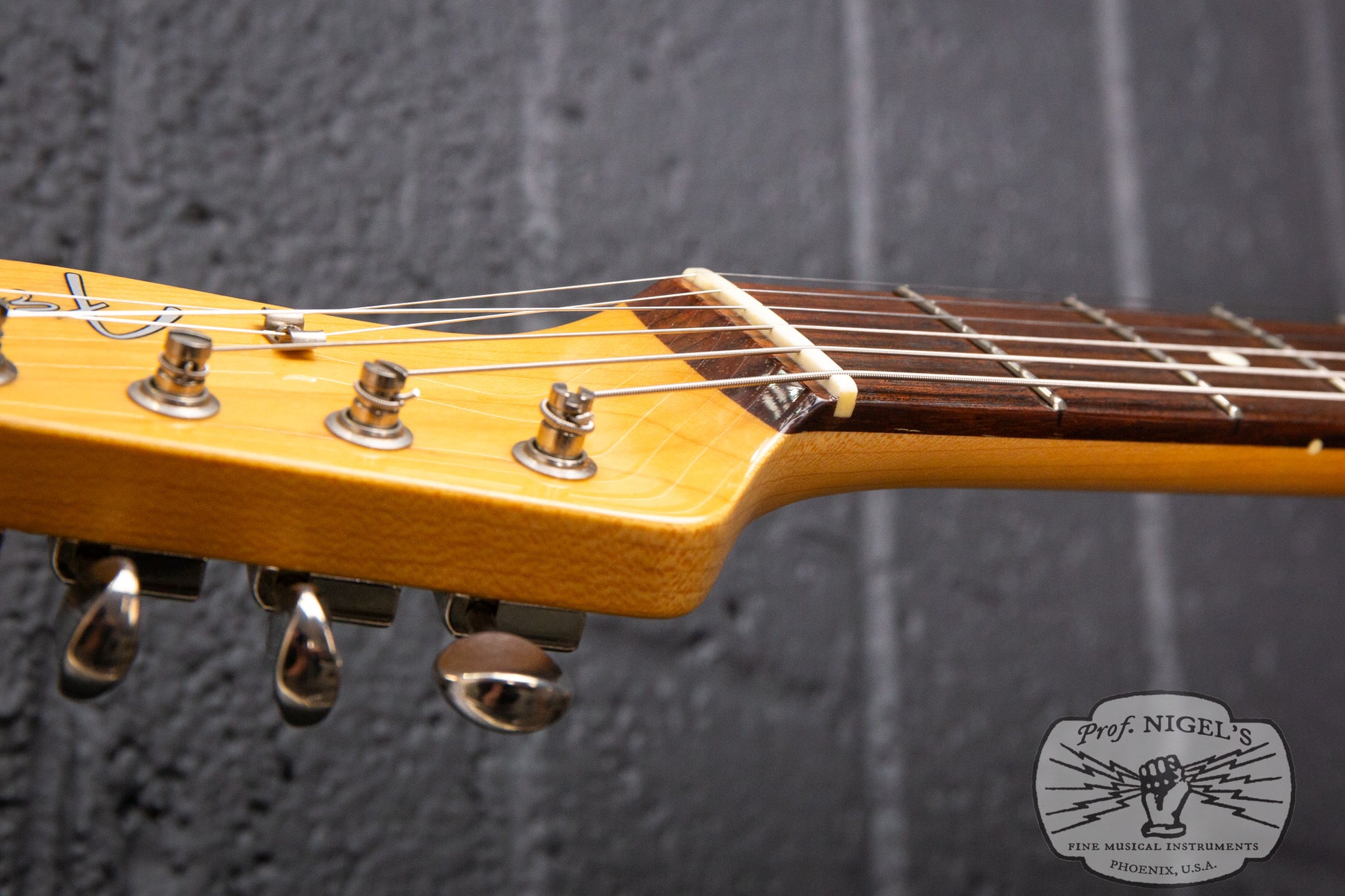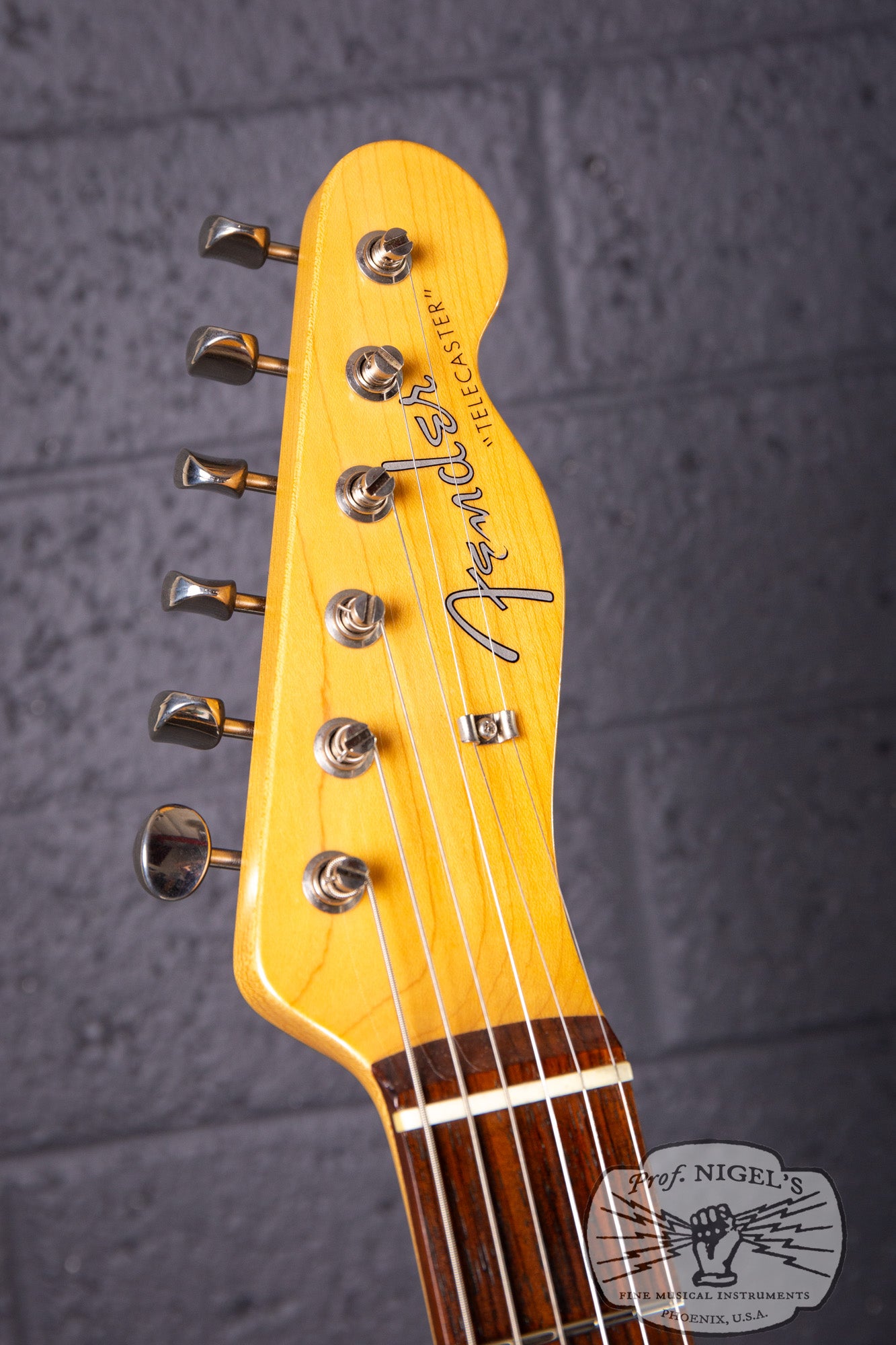 Rated as Excellent condition, this Telecaster shows signs of use that do not affect function or playability in any way. A portion of the “en” in Fender on the headstock logo are missing (pictured). There are fine scratches, tiny scuffs and dings around the body. The metal parts show a light patina, adding to its vintage character. The frets show minor wear, primarily under string 3, with no impact on playability. The neck shows no signs of warping or waviness and the truss rod is in excellent working order with plenty of adjustability remaining.