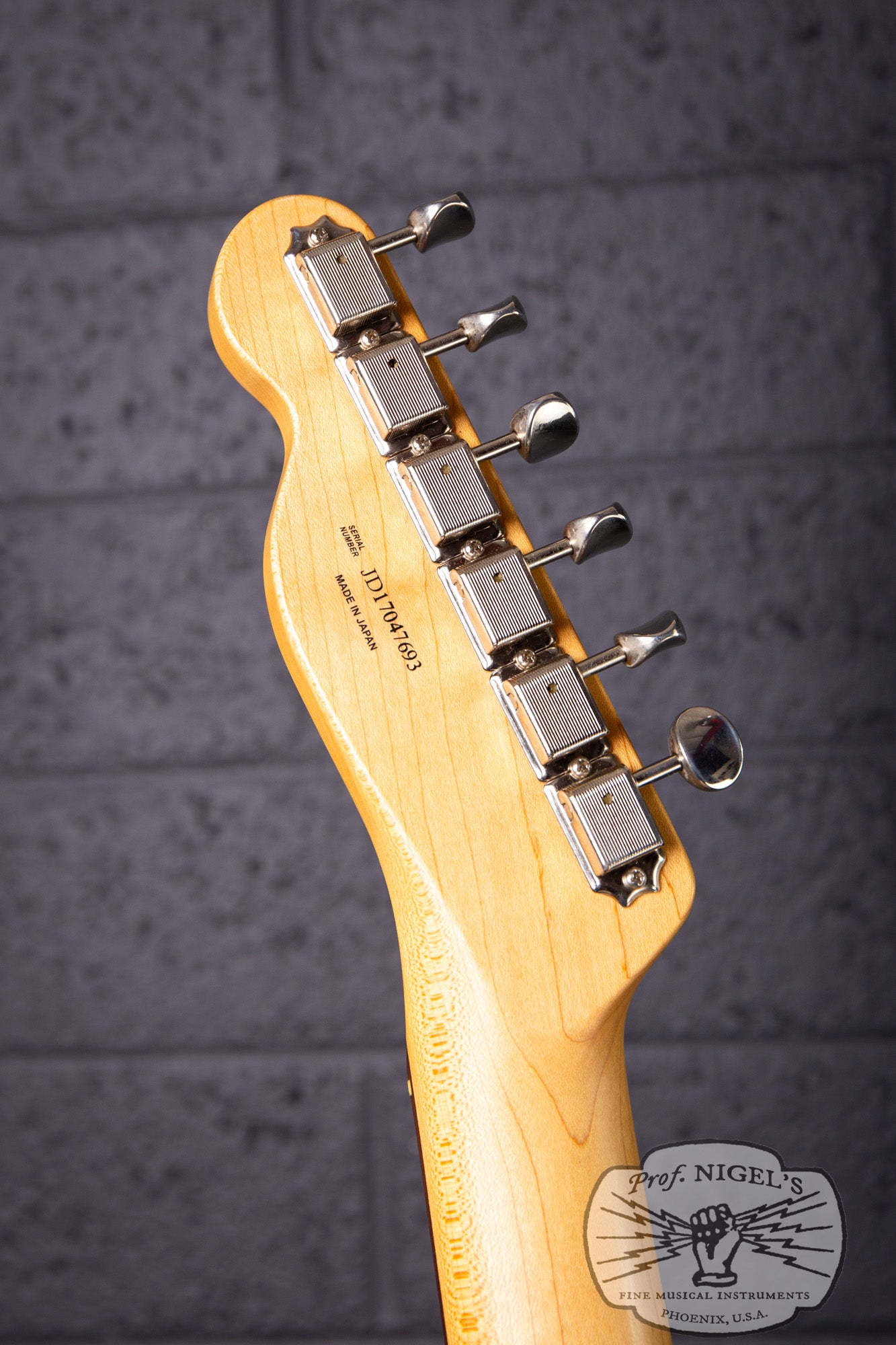 The Hybrid 60s Telecaster is an exceptional model, blending vintage Fender specs with modern enhancements to create one of the finest Telecasters crafted by Fender Japan. Unavailable in the U.S. market, this limited model features 60s-inspired details like a 3-ply mint pickguard, classic ashtray bridge with brass saddles, and rounded dome knobs, along with practical upgrades like locking tuners and a 9.84-inch radius fretboard with medium jumbo frets for smooth, easy playability. The 25.5-inch scale maple neck sports a U-profile neck that feels substantial without feeling bulky or cumbersome (measurements above). A nicely figured rosy brown slab rosewood fingerboard sports 21 beautifully finished medium jumbo frets, real bone nut and white dot markers.
