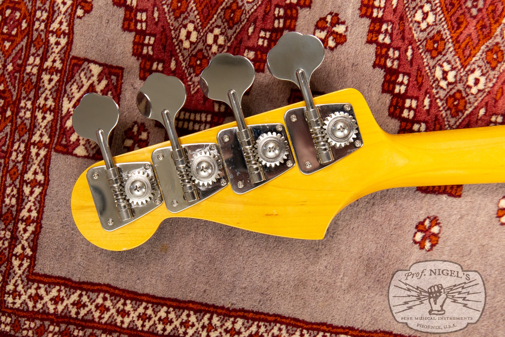 This bass is in Excellent condition. There are few signs of prior use such as fine surface scratches and dings, and minimal fret wear. Upon close inspection, a light patina is visible on the tuning keys. There are a few spots on the back of the body that show minor discoloration in the finish where there used to be stickers. We have emphasized them in photos for clarity in the listing, but they are difficult to see in normal lighting. The truss rod is in good working order with adjustability in both directions. The neck is straight with no signs of warping or waviness. The electronics are in perfect working order with no modification. We have completed a comprehensive multi-point inspection to ensure functionality and condition are as stated. This bass has been professionally set up with D’Addario EXL 45-100 strings with medium action, optimal relief, accurate intonation up and down the neck and dialed-in pickup height. There are currently strap-lock style strap buttons installed. If you’d like standard strap buttons, let us know when you place your order and we’ll swap them out at no additional cost.