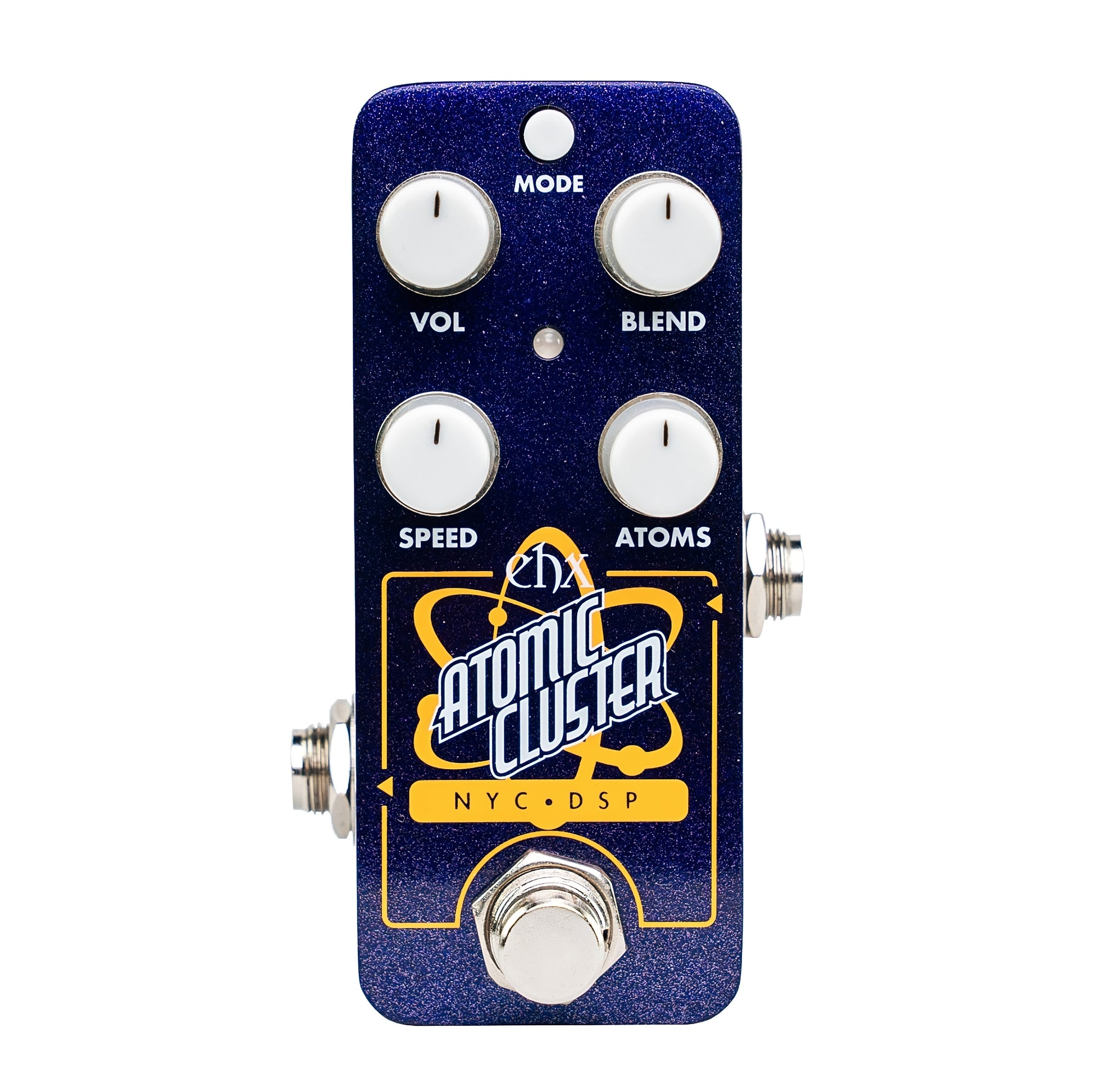 The Electro-Harmonix Pico Atomic Cluster is a compact spectral decomposer that transforms your instrument into a pulsing, reactive texture generator. It breaks your tone into discrete “atoms” of sound, then reassembles them into evolving motion—part glitch sequencer, part ambient synth. The result can range from fractured rhythmic patterns to swelling, cloud-like pads that blur the line between organic and electronic.