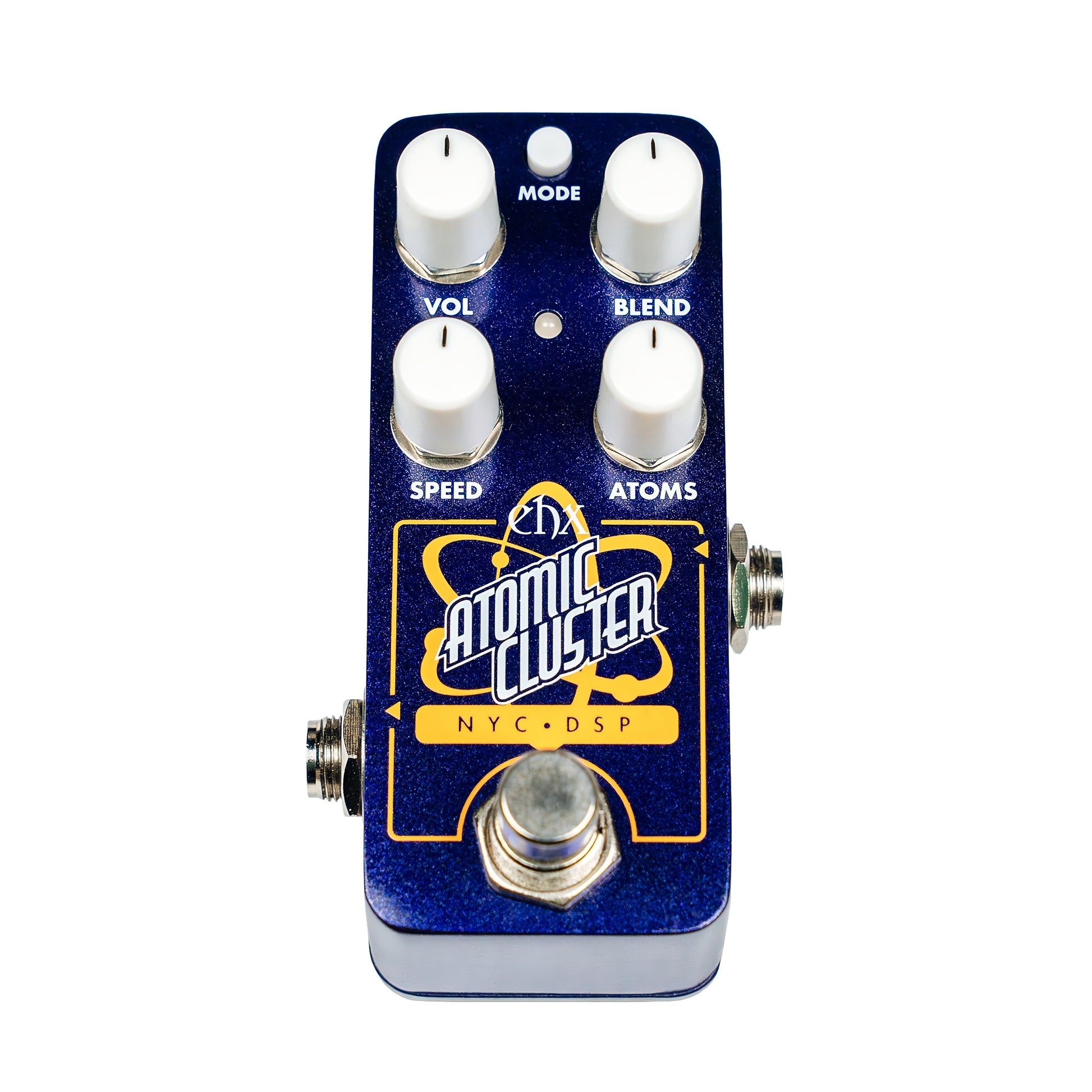 The Atoms control determines how many oscillations are active, shifting the texture from sparse and pointillistic to dense and swirling. Speed sets the refresh rate of those oscillations, adjustable by knob or tap tempo, while Blend balances clean and processed tones. A Mode switch toggles between Sharp transitions for choppy arpeggiations or Smooth mode for gradual, evolving layers. Despite its compact Pico format, the Atomic Cluster opens an entire new sound world—perfect for experimental guitarists, synth explorers, and anyone drawn to unpredictability and motion.
