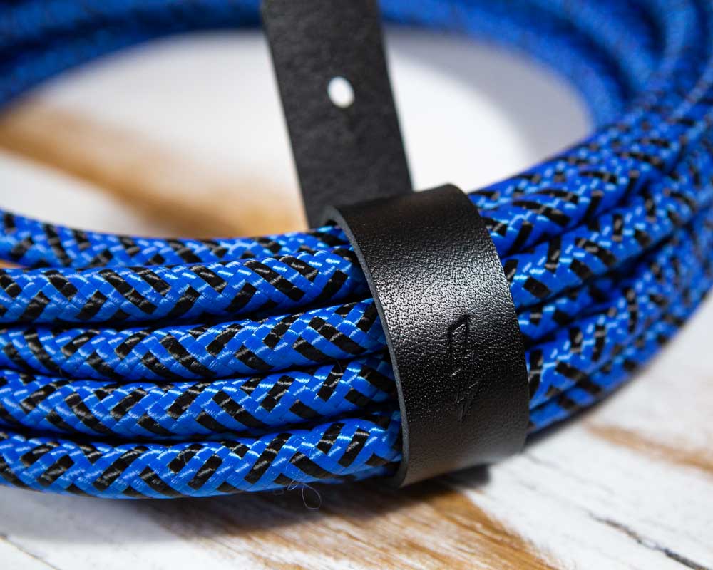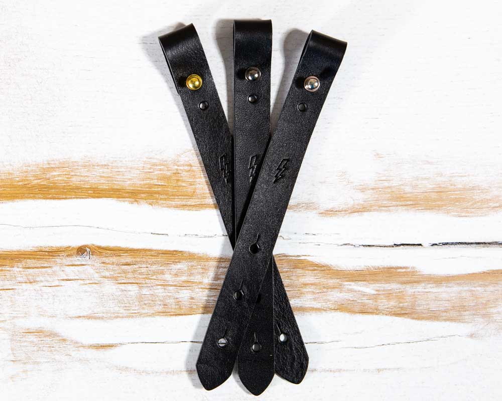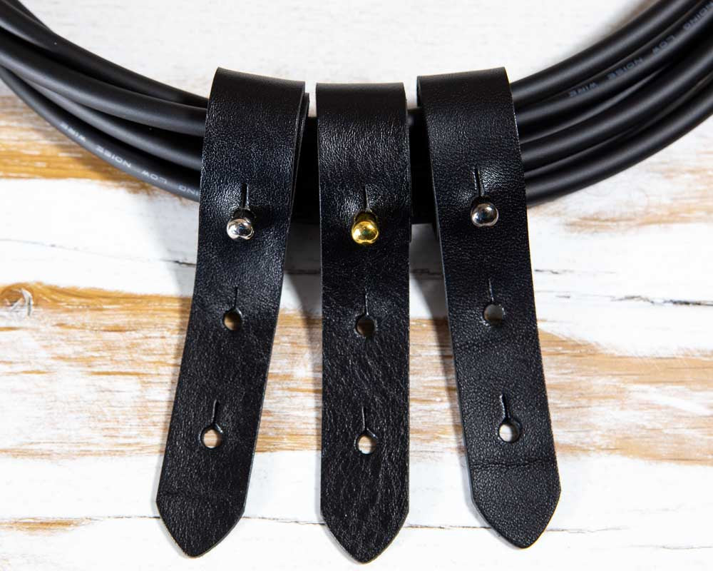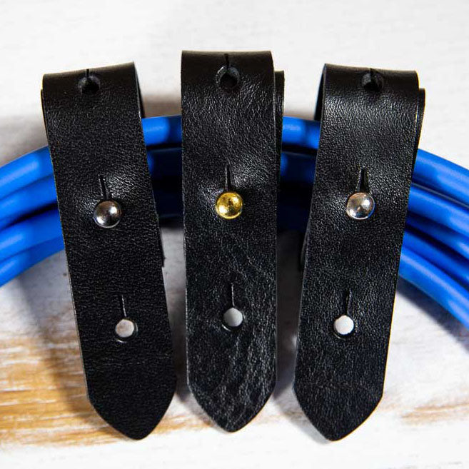 Tired of using utilitarian plastic hook and loop cable ties for frequently used cables, we decided to try something new. Enter The Professor's Leather Cable Keeper in black, superior cable management for your best instrument cables. Hook and loop ties have their place in cable management. We use them in many applications. But most fray easily when used frequently and end up a fuzzy mess. Additionally, a primary goal for the Professor Nigel's brand is to reduce use of plastic or other materials that are not recyclable, biodegradable or compostable.