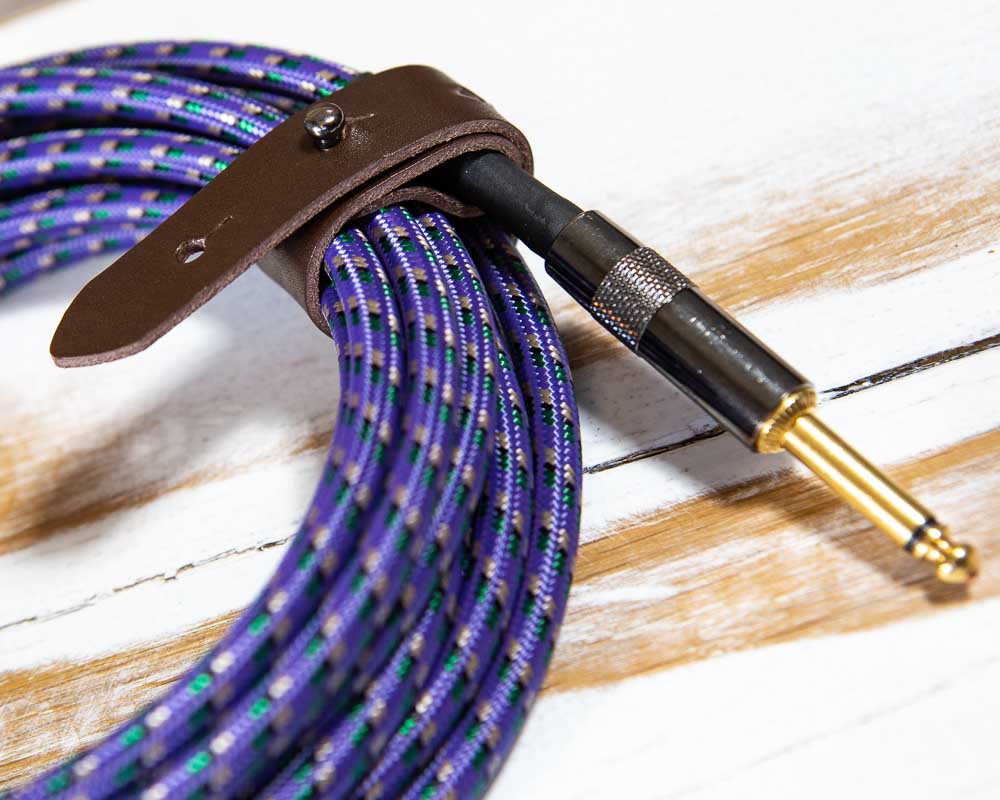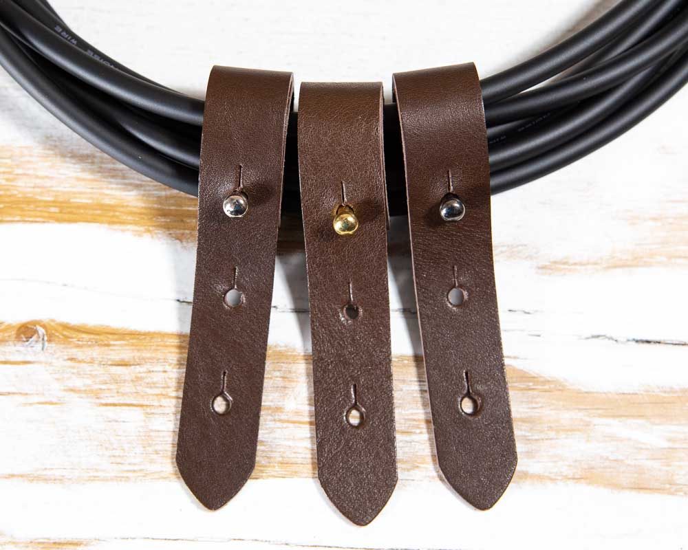 Tired of using utilitarian plastic hook and loop cable ties for frequently used cables, we decided to try something new. Enter The Professor's Leather Cable Keeper in black, superior cable management for your best instrument cables. Hook and loop ties have their place in cable management. We use them in many applications. But most fray easily when used frequently and end up a fuzzy mess. Additionally, a primary goal for the Professor Nigel's brand is to reduce use of plastic or other materials that are not recyclable, biodegradable or compostable.