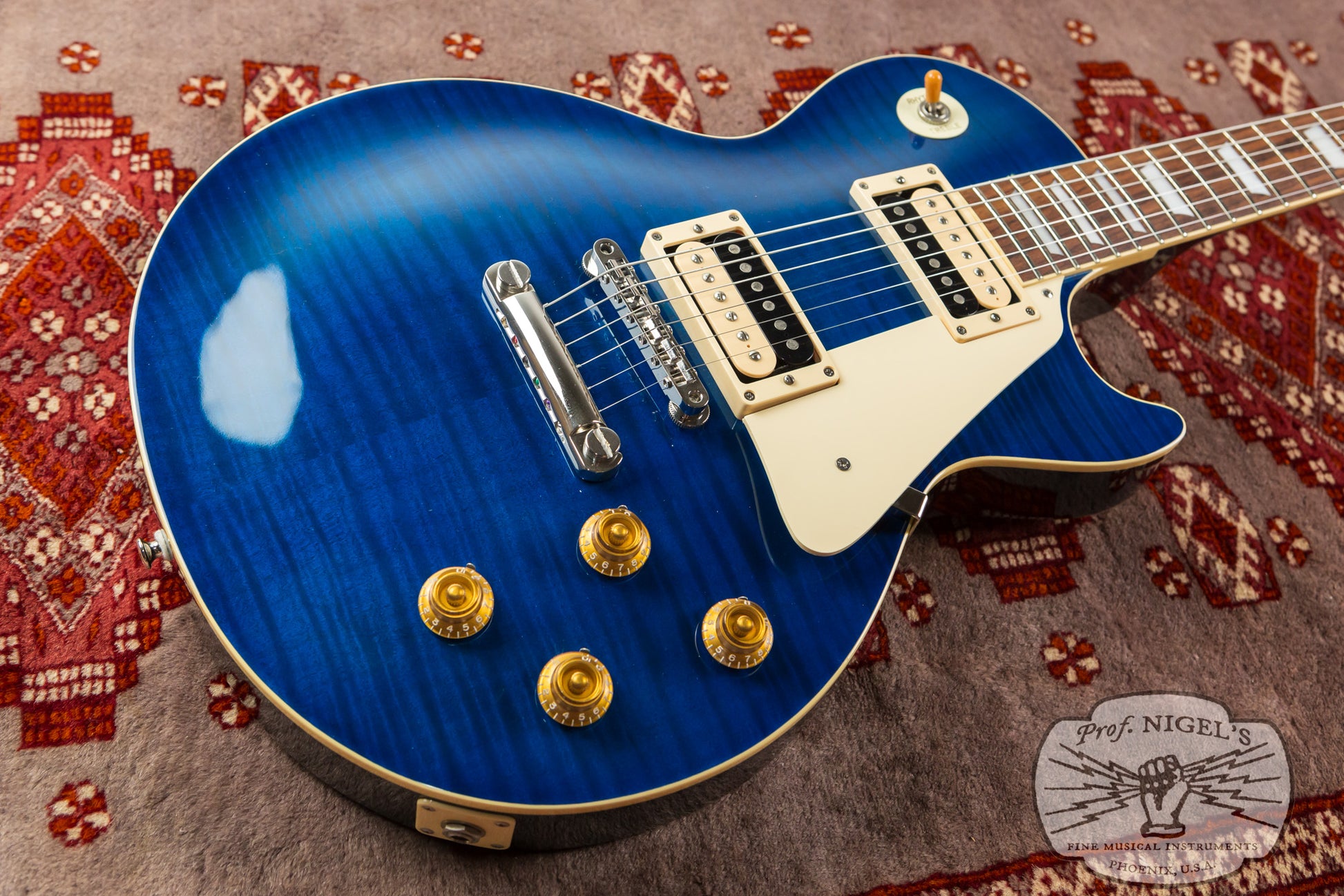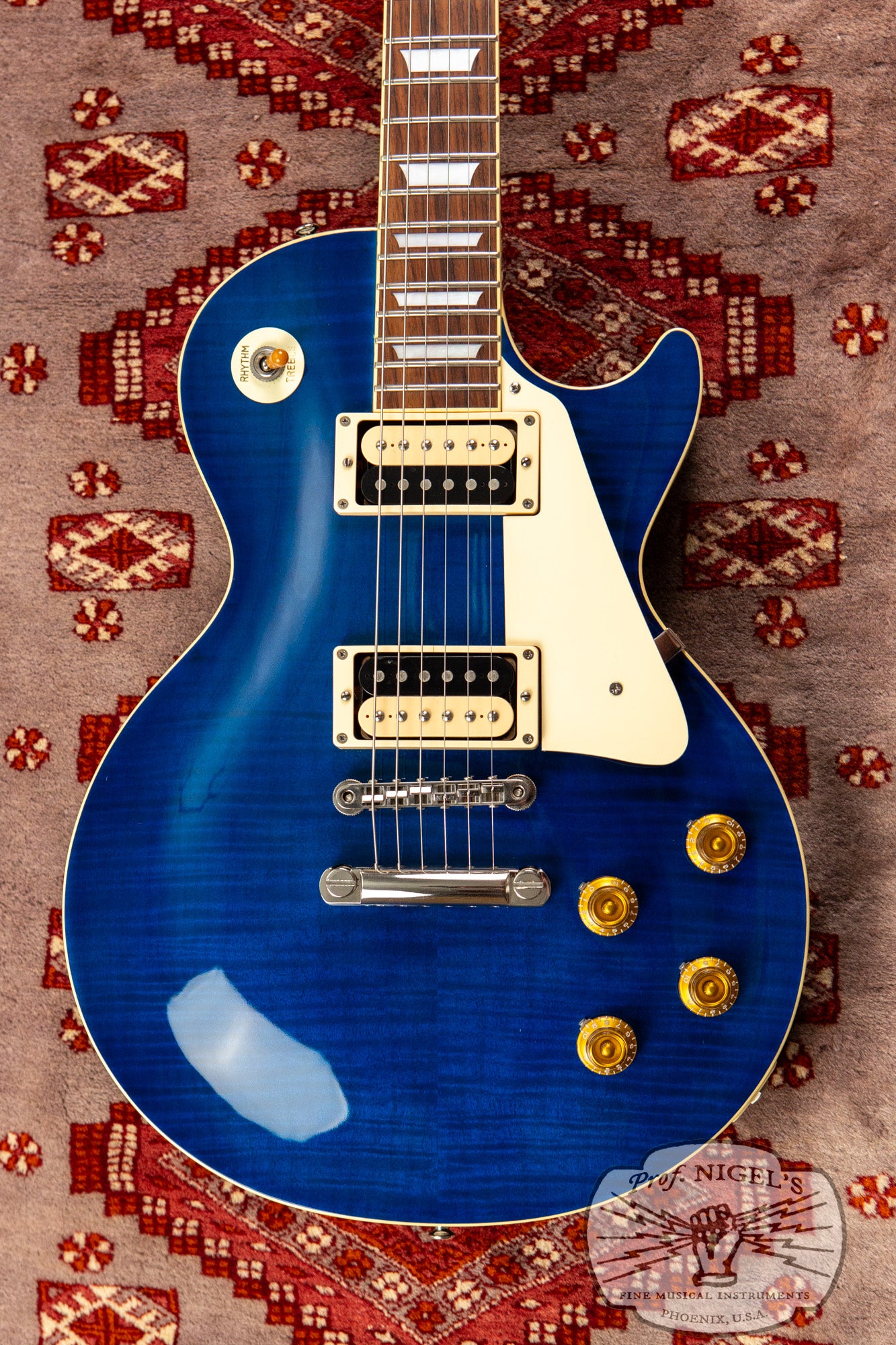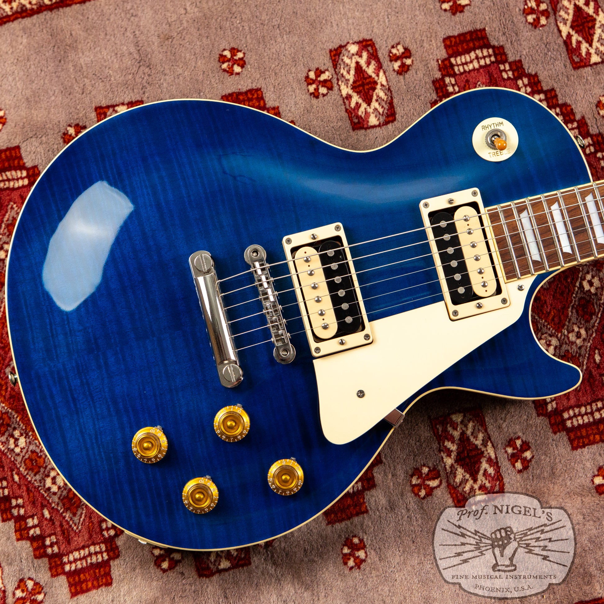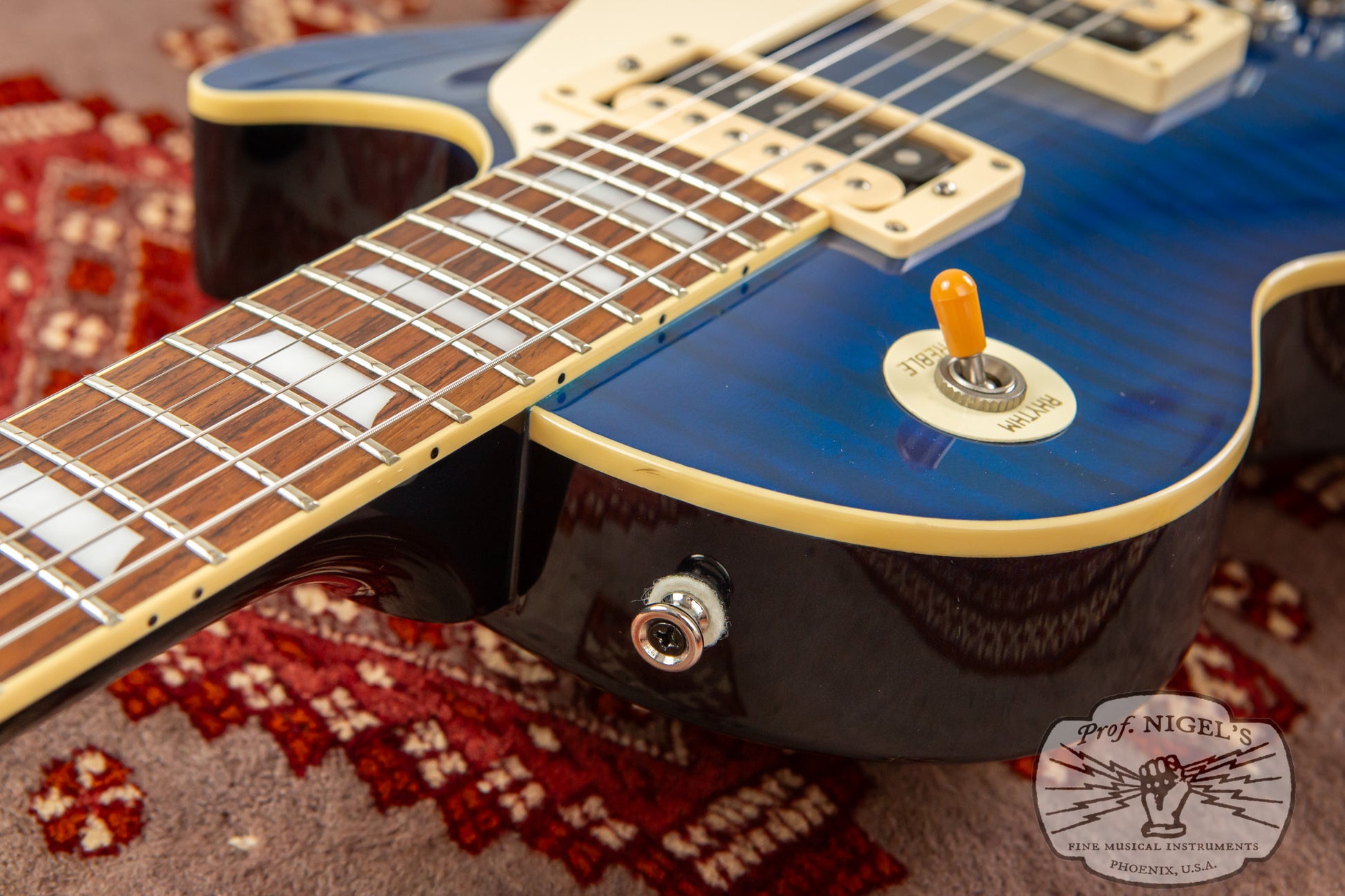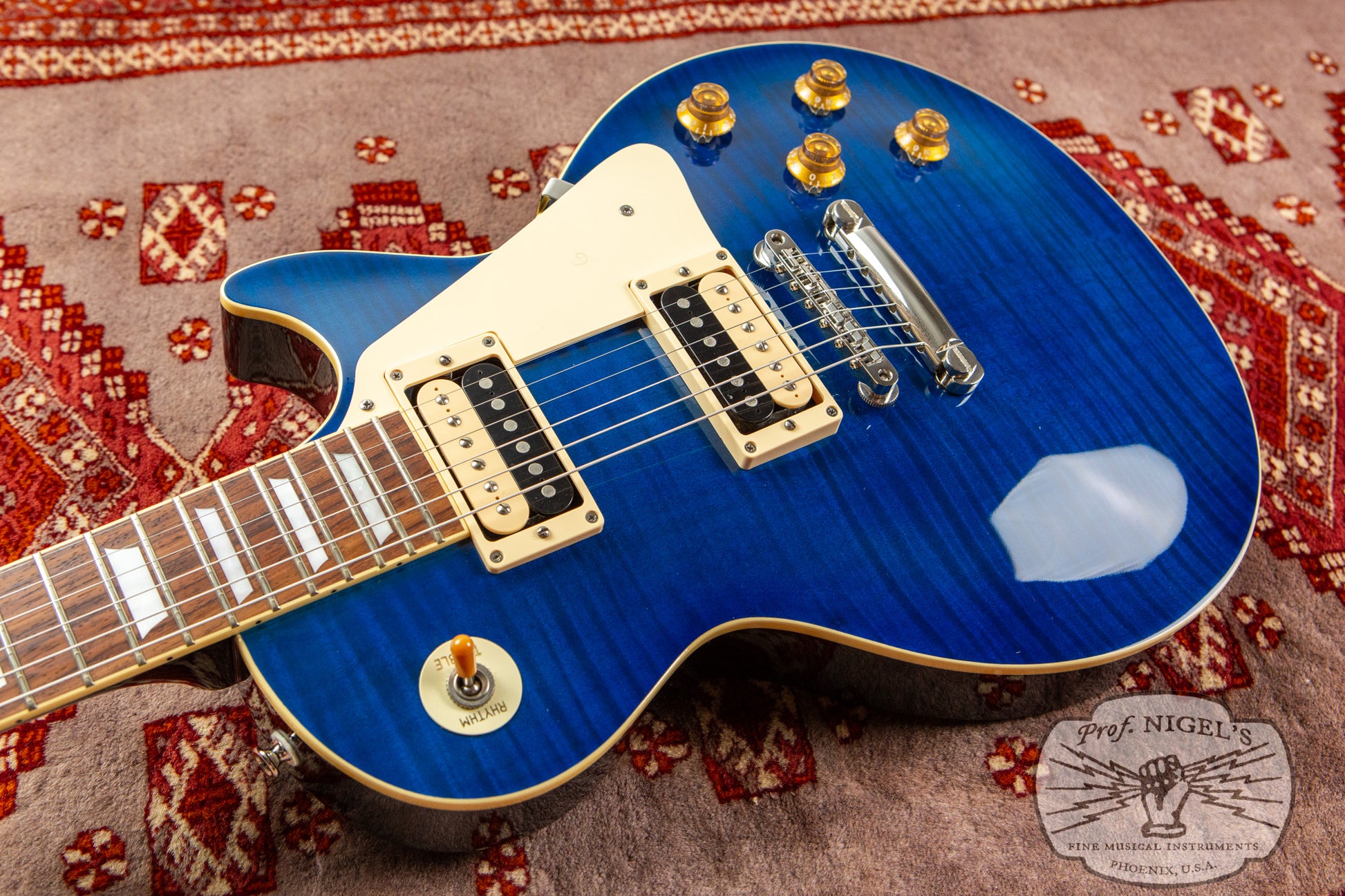 The LS128F offers a refined take on the classic Les Paul recipe—expertly crafted in Japan with premium materials and a striking Indigo Blue finish that sets it apart. A beautifully figured flame maple top, select mahogany, fantastic pickups and a set neck check off all the essential ingredients for rich sustain and outstanding tone, making this a standout choice for players who want exceptional build quality with timeless LP sound and feel.