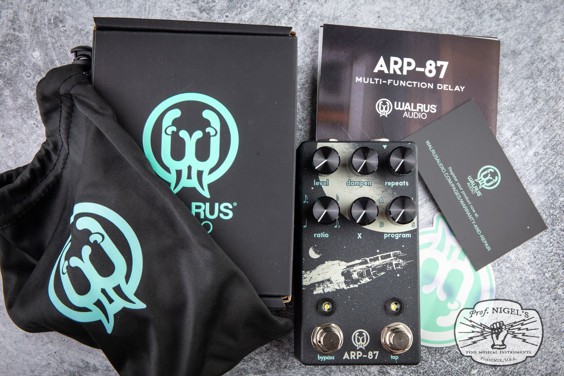 The Walrus Audio ARP-87 is a versatile multi-mode delay designed to inspire exploration. Featuring Digital, Analog, Lo-Fi, and Slap modes, it offers everything from precise rhythmic echoes to degraded ambient textures. The X control varies per mode for deep tonal sculpting, while modulation and tap tempo open doors to endless rhythmic and atmospheric possibilities. Professor's Tip: Set the Lo-Fi mode with light modulation for an aged-tape feel — perfect for dreamy leads or atmospheric intros that hover between memory and imagination.